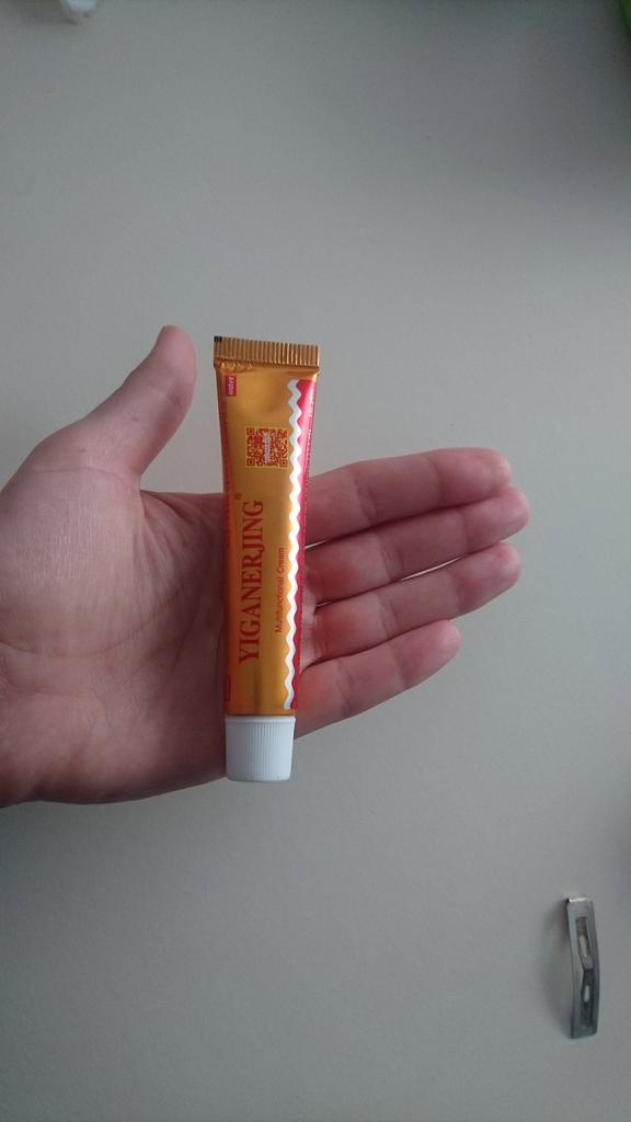 Hab die Creme getestet und sie scheint zu helfen. Leider ist der Inhalt zu klein nur 15 Gramm. Wenn man größere Flächen hat sollte man mehr bestellen ca. 10st. Weil die Lieferung so lange dauert. Bei mir waren es 4 Wochen.