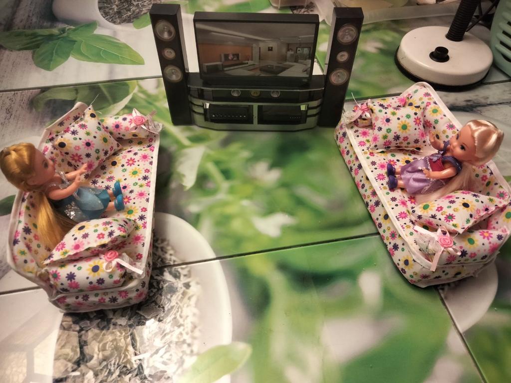 3 Teile/satz Sofa Couch 2 Kissen Für Kinder Puppenhaus Möbel Druck