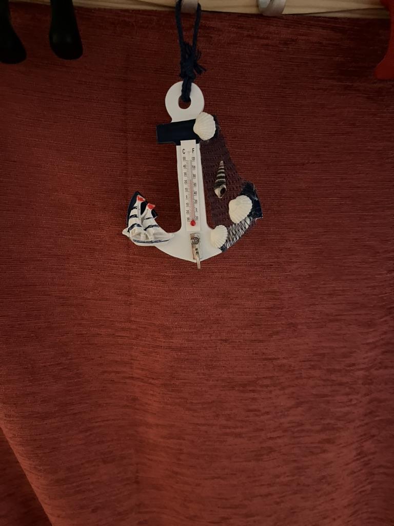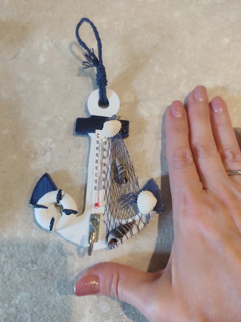 Holz-Anker-Thermometer, Kunsthandwerk, Wandbehang, Haken, Messgerät, Muschel, nautisches Dekor