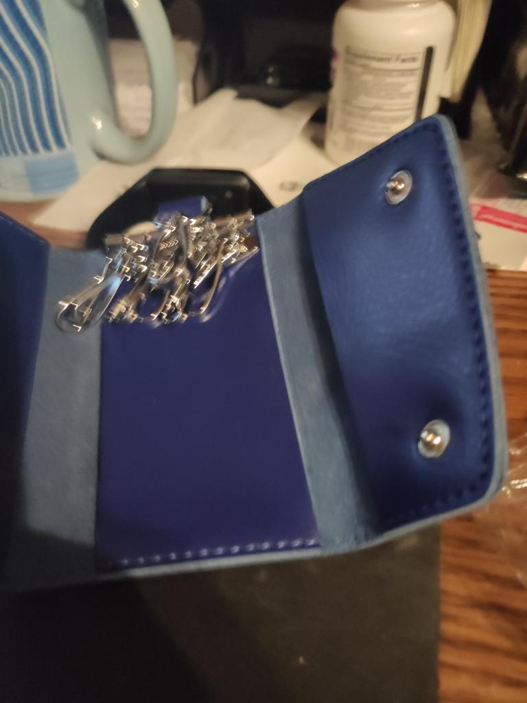 Richtig. Sowohl die Haken als auch der Schlüsselanhänger selbst wirken widerstandsfähig. Es bietet Platz für Geld oder Dokumente.