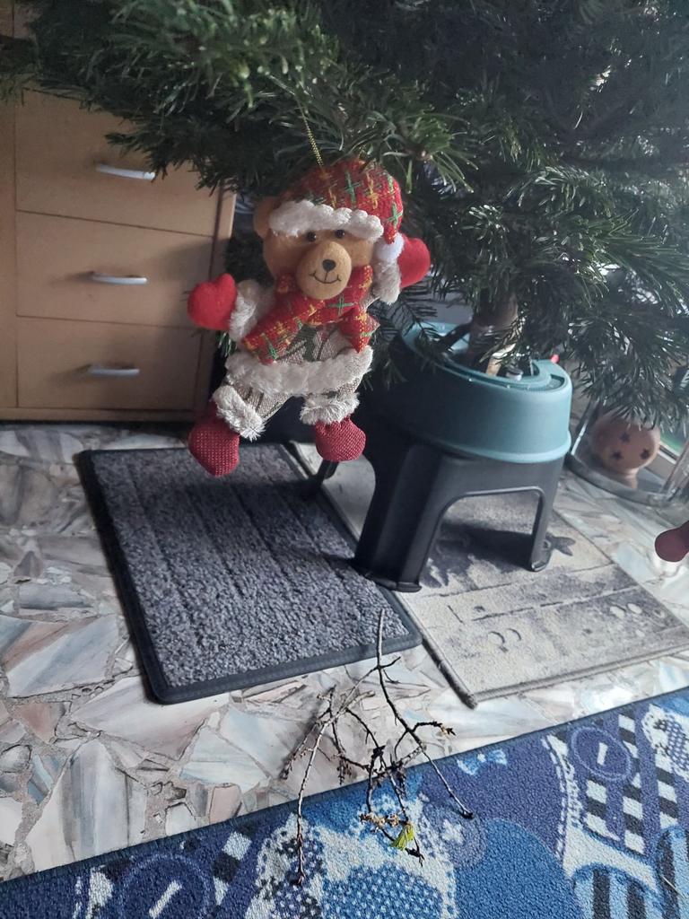 Weihnachtsmann, Schneemann, Elchpuppe, Weihnachtsdekoration, Weihnachtsbaum, dezente Ornamente, Heimdekoration