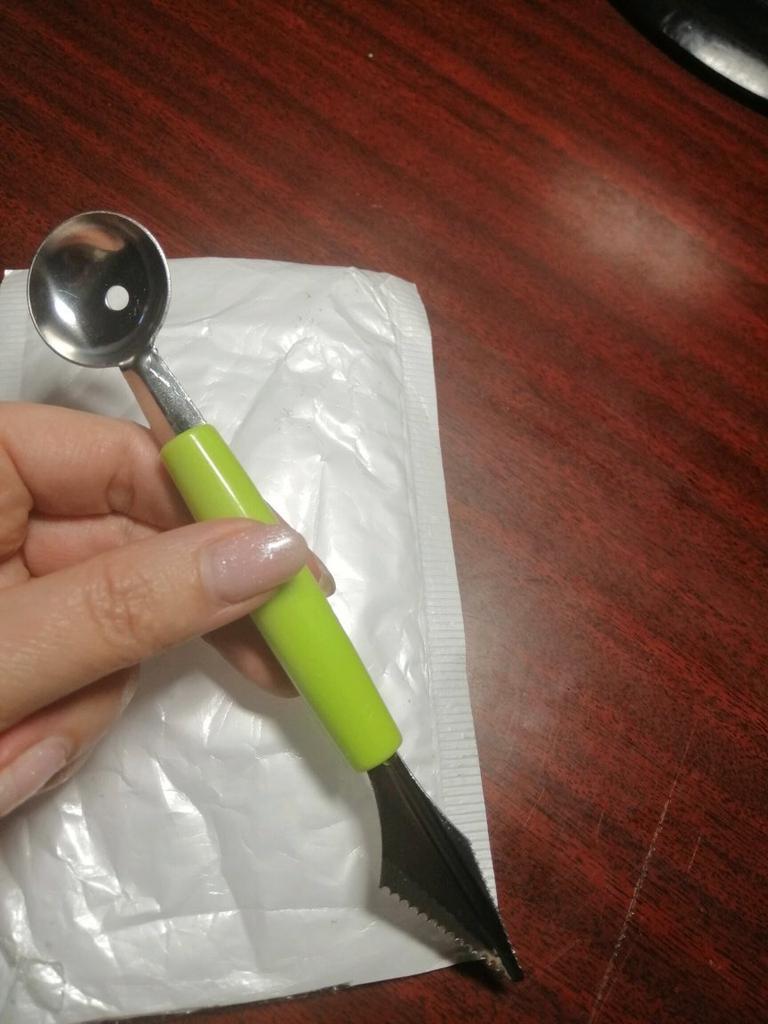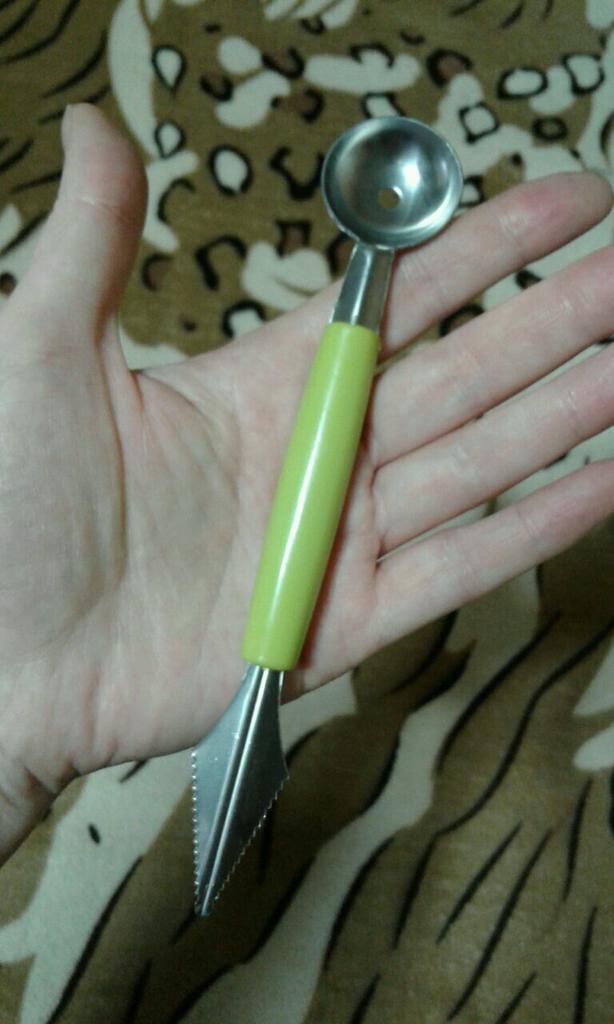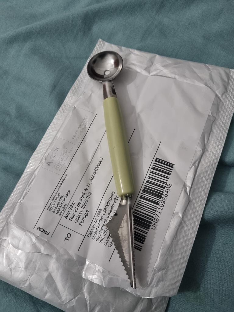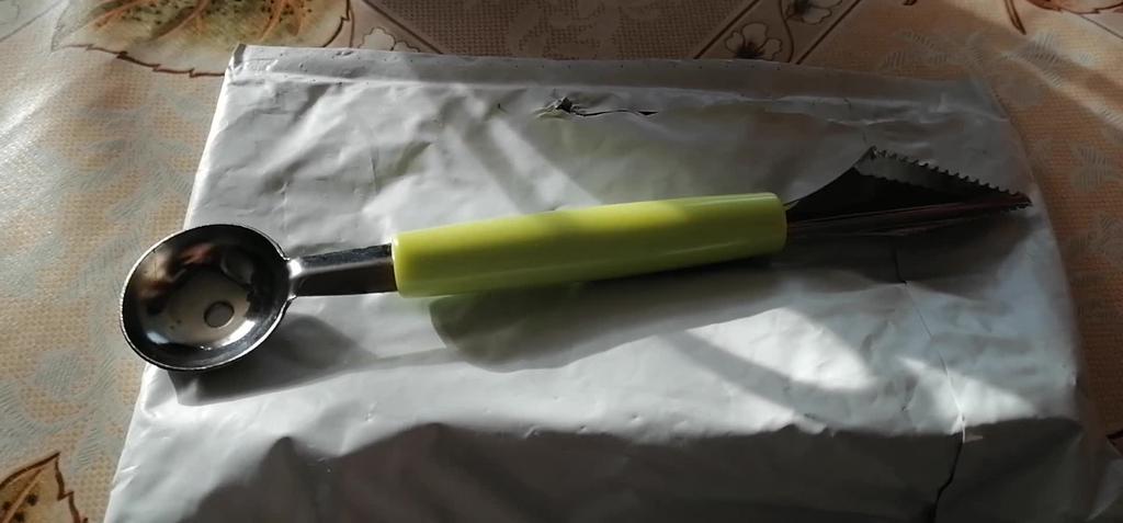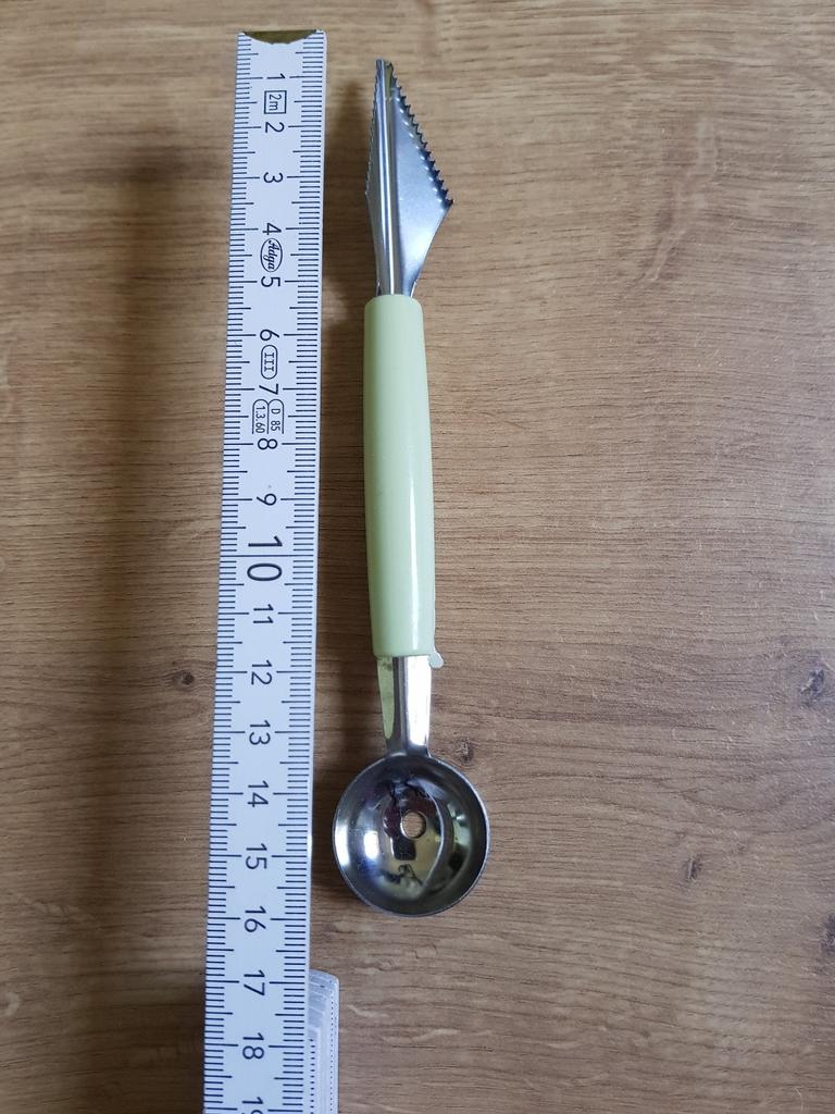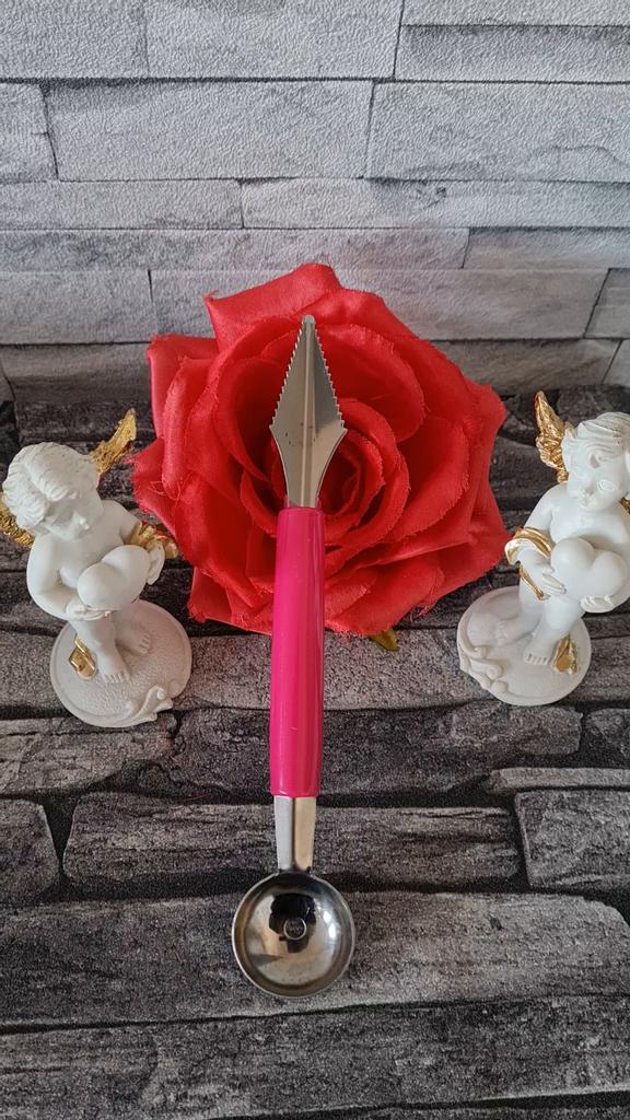 Das Paket ist pünktlich gekommen 📦 Ich bin mit dem Melonenausstecher sehr zufrieden. 🍉🍈 Beide Seiten sind sehr scharf, so dass man ohne Probleme schöne Kugeln bzw Muster formen kann. Er liegt gut in der Hand und die Qualität ist super. Er eignet sich aber nicht nur für Melonen, die Kerne von Äpfeln kann ich damit auch ganz einfach ausstechen.🍎 Ich kann dieses Produkt nur weiterempfehlen, für verschiedenes Obst und Gemüse und bin sehr zufrieden.🥰