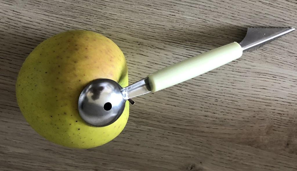 Funktioniert sehr gut, aber wenn Sie es verwenden, um die Früchte herauszuschöpfen, ist das andere Ende scharf und verletzt meine Hand. DAS IST, WENN ES EINER HAND WEHT