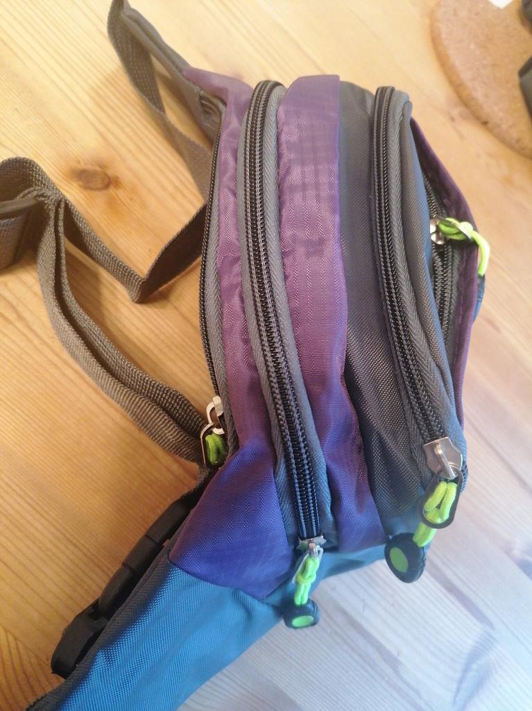 Praktische Bauchtasche mit 4 Reissverschlüssen, also 4 Abteilen zum Sachen verstauen. Genial, wenn man mit dem Hund unterwegs ist. Da gibt es Platz für Leckerlis, für Hundesäckchen, für Geldbeutel und Handy. Toll!!! Und dazu erst noch in meiner Lieblingsfarbe!