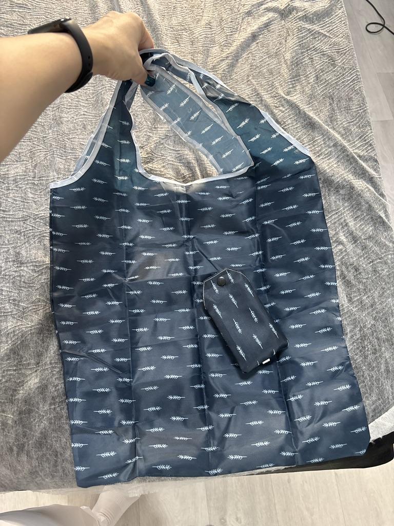 Die Einkaufstasche wird in einer kleinen Tasche geliefert, es ist sehr praktisch, sie in Ihre Handtasche zu werfen, und wenn Sie von der Arbeit nach Hause gehen, können Sie zum Lebensmittelgeschäft gehen
