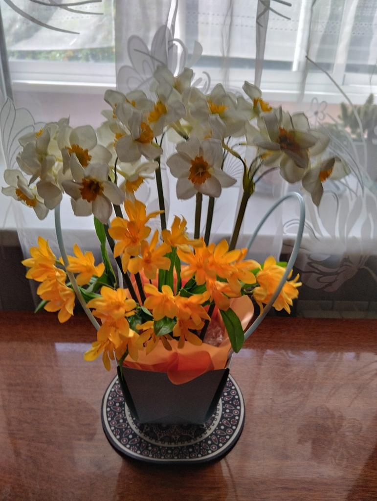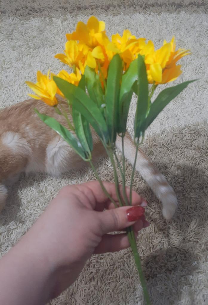 Der Strauß ist mehr als bescheiden. Die Blüten und Blätter waren faltig. Nach dem Dämpfen wurden sie besser. Man kann nicht in eine Vase gestellt werden, sondern nur in eine Komposition.