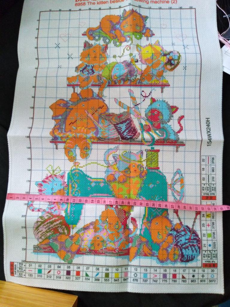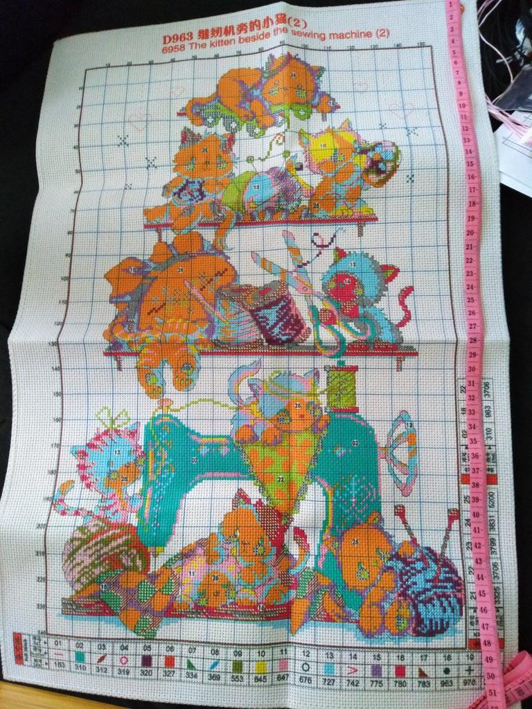 Lustige Katzen auf der Nähmaschine, Kreuzstich-Set für Kinder und Erwachsene, 45 x 66 cm, 11 CT