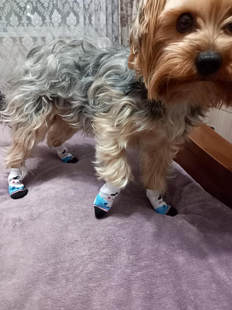 Sehr schöne und bequeme Söckchen, von guter Qualität. Das Gummiband hält gut, schnürt aber nicht ein. Ich habe die Socken speziell für Gummistiefel bestellt, damit das Gummi die Pfoten des Hundes bei kaltem Wetter nicht auskühlt. Sehr bequem, wir haben es bei starkem nassem Schnee ausprobiert. Die Pfoten waren trocken, nicht kalt, der Hund fand es bequem, wenn es nass wurde, wollte er auf den Arm. Aber bei solchem Wetter ist er gut gelaufen, es hat ihm gefallen, während einer Stunde Spaziergang wollte er nicht auf den Arm.. Mit dem Produkt bin ich vollkommen zufrieden, ich empfehle das Produkt und den Verkäufer. Das Produkt entspricht der Beschreibung und dem Foto, es gibt keine Abweichungen. Ich plane sogar, ein weiteres Paar als Reserve zu bestellen!