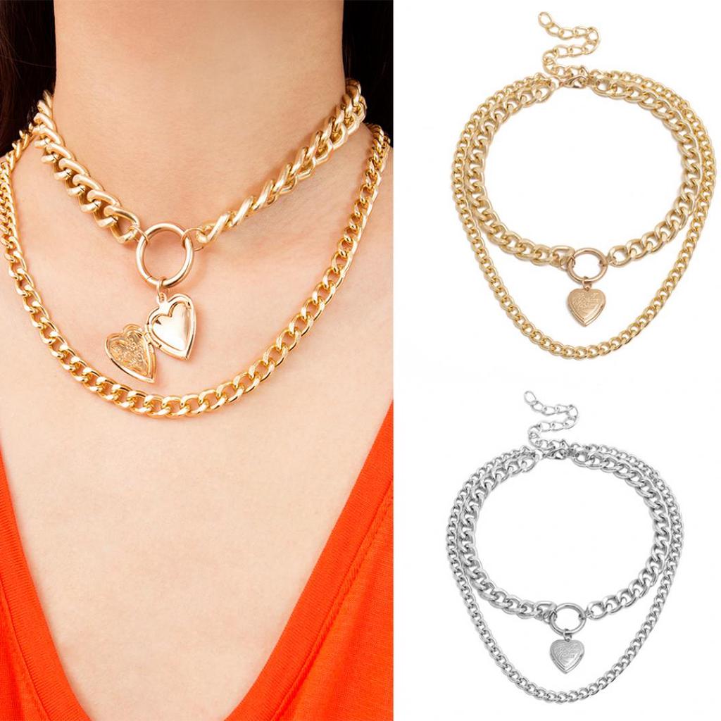 Punk Double Layer Love Herz Anhänger Dicke Panzerkette Choker Halskette Schmuck