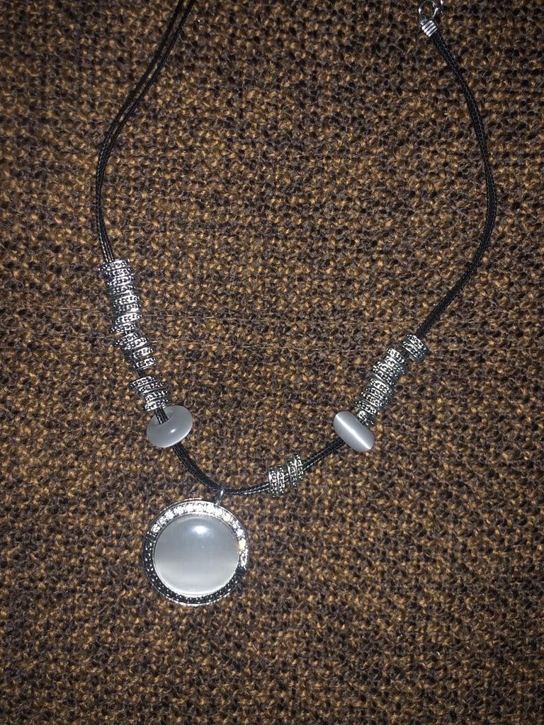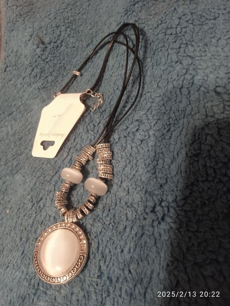 Sehr süße Kordelkette mit einem Anhänger, der einem Mondstein ähnelt. Danke!