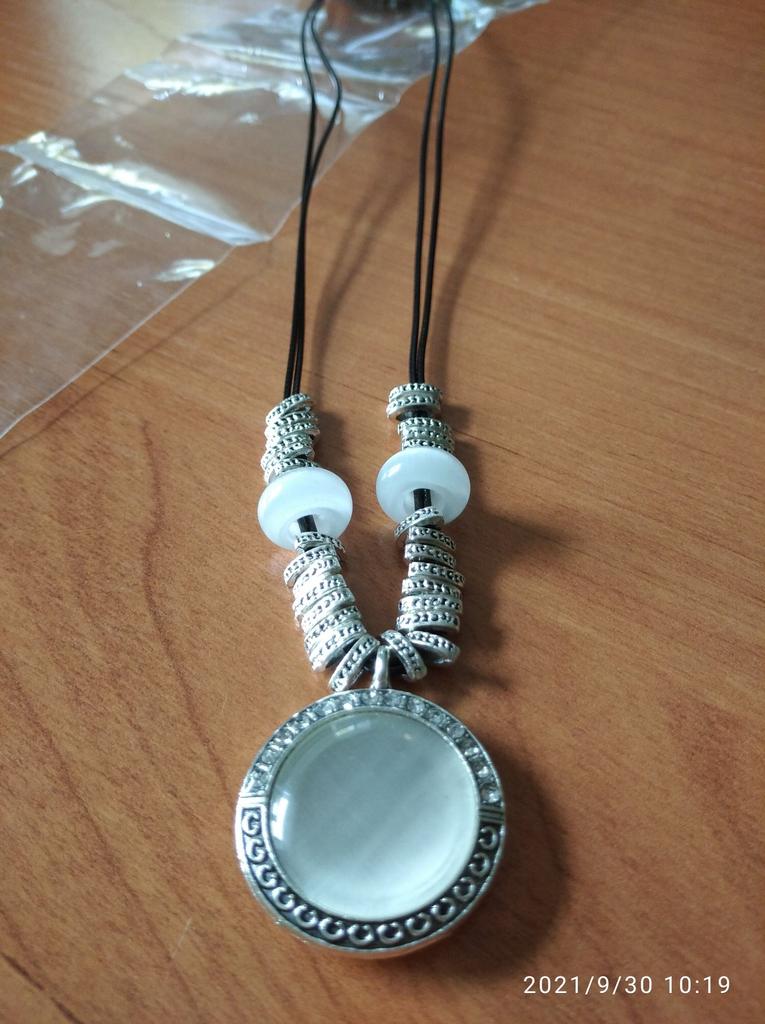 Wunderschöne Halskette mit großem Medaillon. Ich weiß nur nicht, was für ein Stein es ist? Es schimmert wie ein silberner Kristall. Vielen Dank an den Verkäufer für den schnellen Versand 👍. Ich empfehle diesen Laden 😍❤️😀❤️❤️❤️❤️❤️. Ich werde auf jeden Fall noch einmal etwas bestellen.