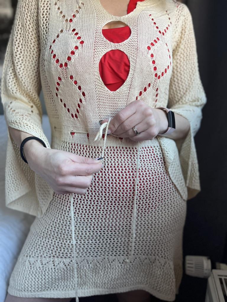 💃 Strandkleid 💃 Nach etwa 3 Wochen Lieferzeit wurde mir dieses Strandkleid hervorragend verpackt und in sehr gutem Zustand zugestellt 💃 Dieses Modell ist in vielen Farben und einer Einheitsgröße verfügbar. Mir passt diese Größe bei meiner Körpergröße von 177cm hervorragend gut. 💃 Das Material fühlt sich auf der Haut ausgesprochen gut an. Ich bin derart happy mit diesem Modell, dass ich es auf jeden Fall in mindestens einer weiteren Farbe bestellen werde! 💃 Das Kleid ist asymmetrisch geschnitten und erstreckt sich an der Rückseite etwas länger über die Oberschenkel. An der Vorderseite bietet es viel Beinfreiheit und betont dadurch lange Beine umso mehr 💃 Das gesamte Kleidungsstück ist im Häkeldesign und somit durchscheinend und sexy. Die Ärmellänge hat 3/4 Länge und bietet einen Schlitz an der Seite. Im Vorderbereich wird das Kleid zwischen Brust und Nabel gebunden und bietet daher einen verspielten Touch. 💃 Ich werde mein Kleid im Wollprogramm mit 20 Grad und wenig schleudern in der Waschmaschine waschen und anschließend auf dem Wäscheständer auflegen. 💃 Ich empfehle Frauen jeden Alters ein Strandkleid dieser Art, da es die Badekleidung sexy durchschimmern lässt und Frau trotzdem bekleidet ist ohne zu viel Körper am Strand zu zeigen!