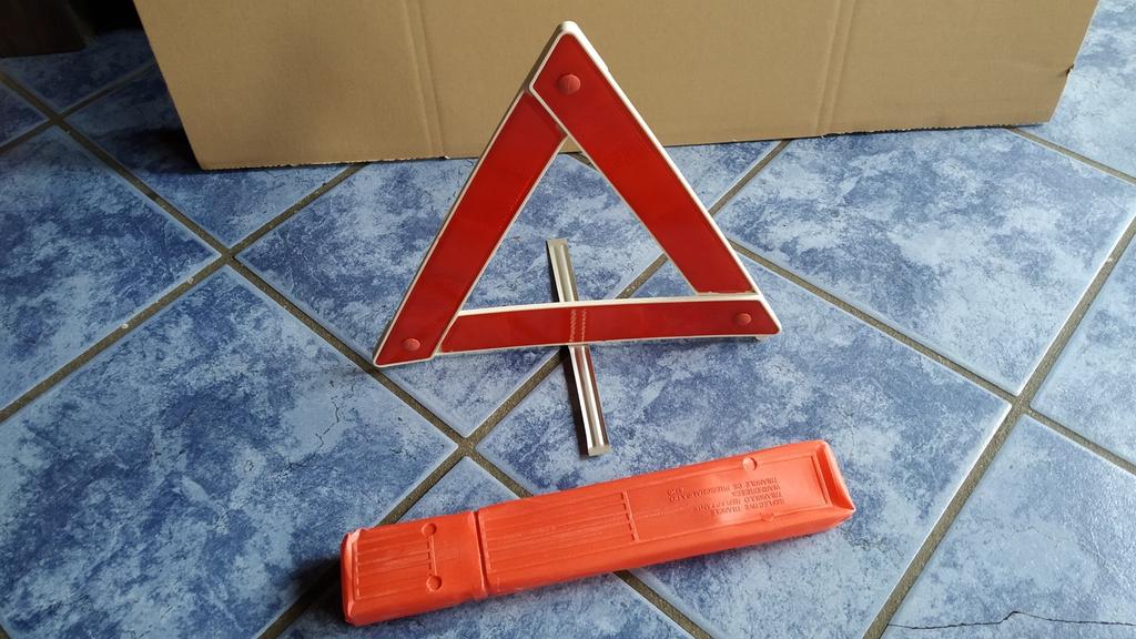 Das Warndreieck ist zu leicht, der geringste Wind wird es von der Straße wehen, Sie müssen einen Stein finden, um es zu stabilisieren
