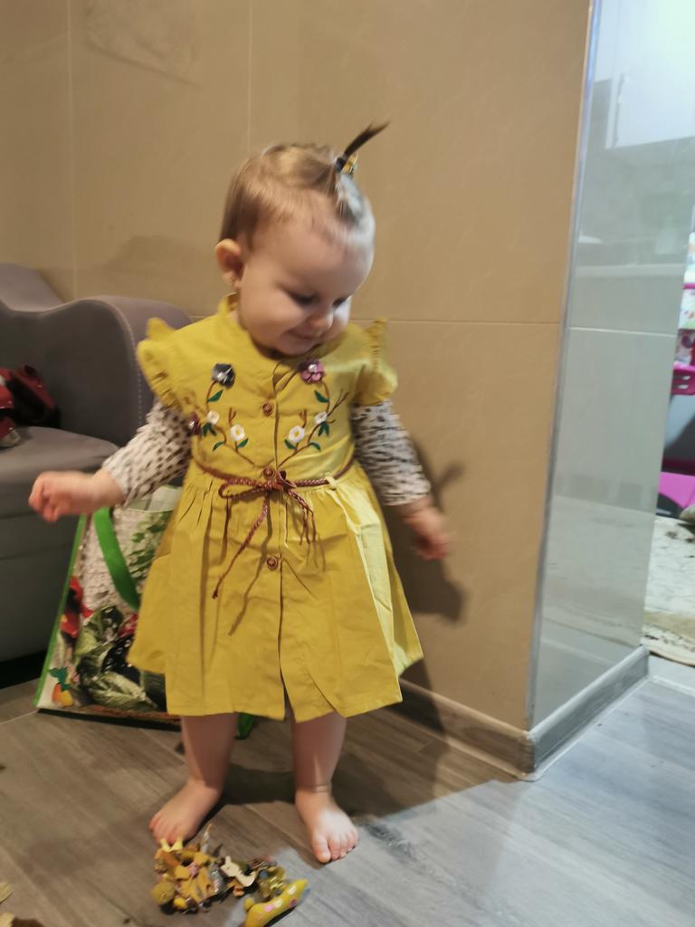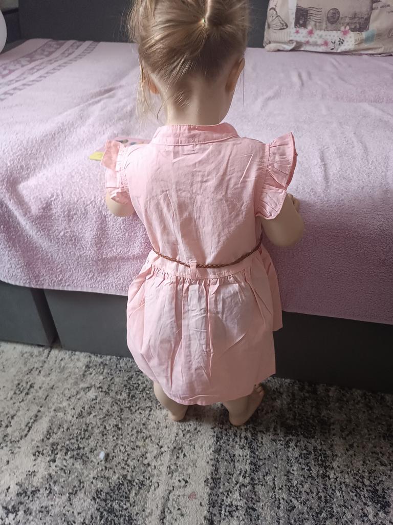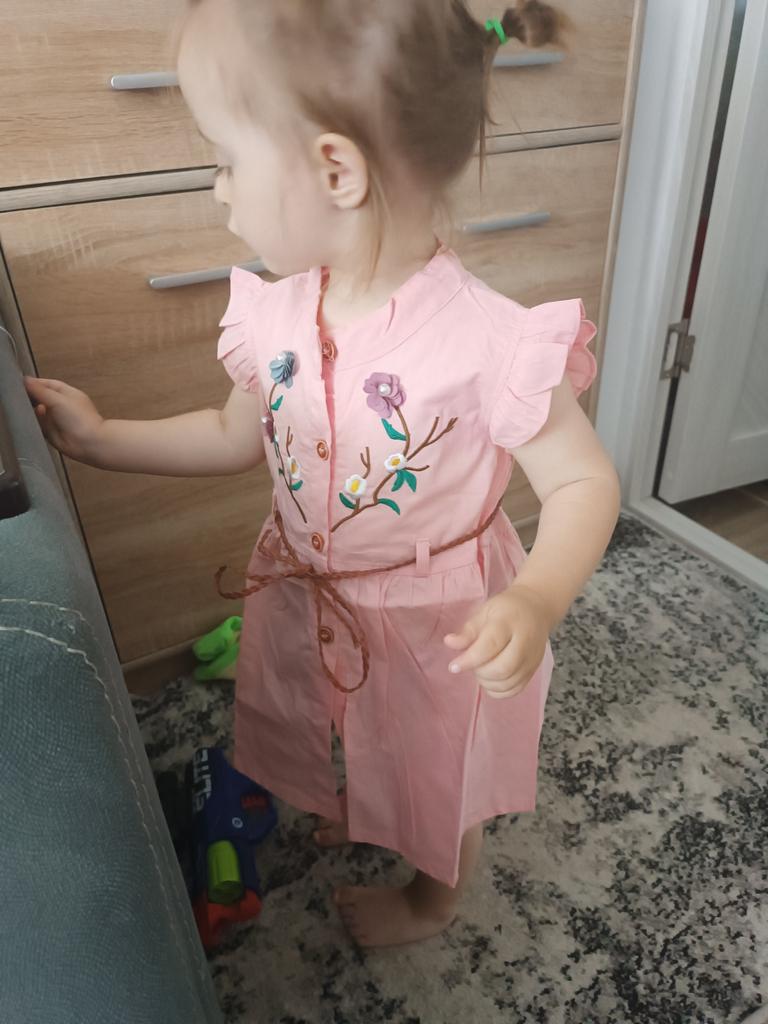 Das Kleid ist sehr hübsch, Baumwolle, sauber genäht, im Sommer werden wir 9 Monate alt, ich denke, es wird genau richtig sein, kaufen Sie es, Sie werden es nicht bereuen.