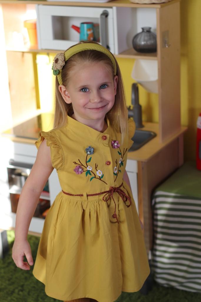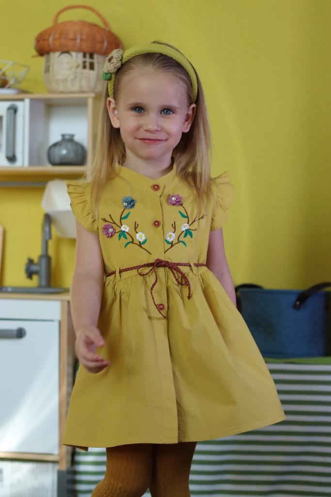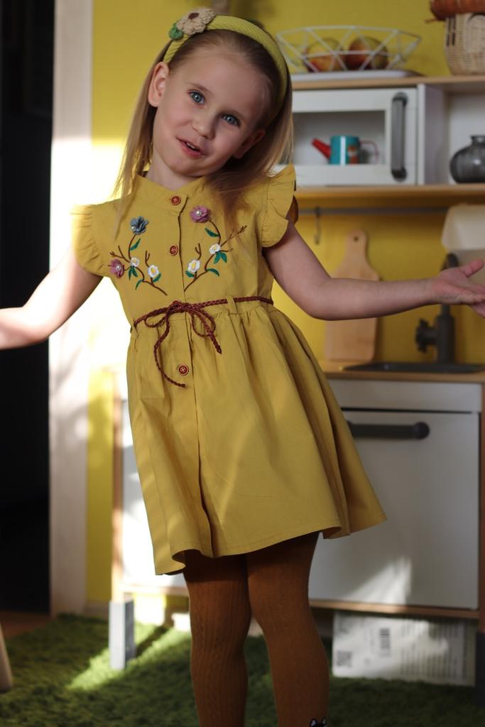 Ein wunderschönes Kleid für eine kleine Prinzessin für den Sommer, hochwertige Stickerei, inklusive Gürtel, Baumwollzusammensetzung, keine Fäden und kein Geruch.