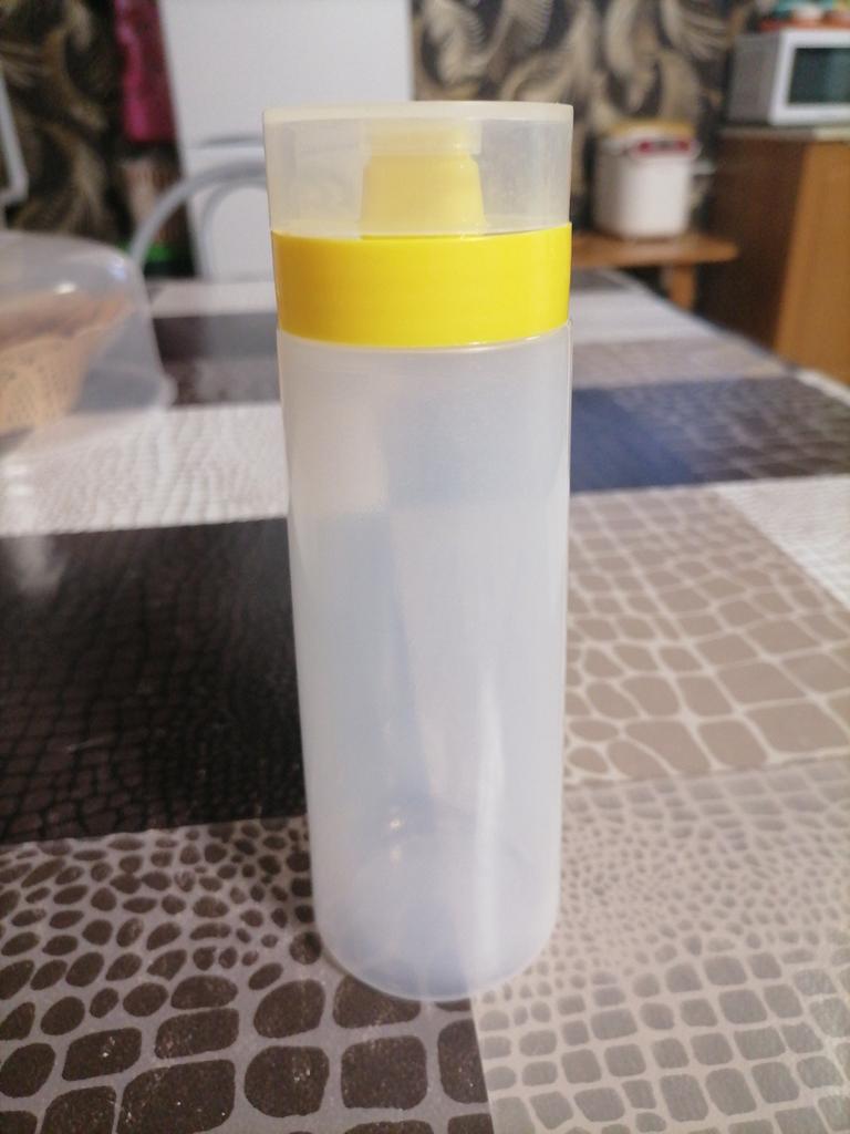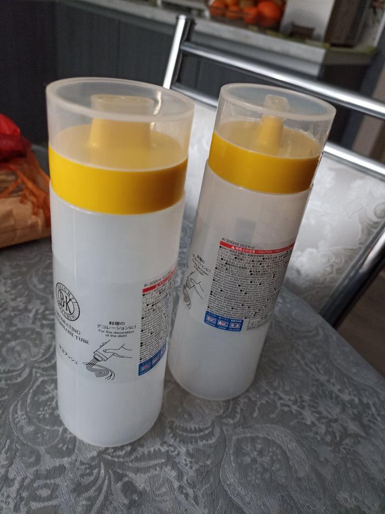 Bestellung pünktlich erhalten, gut verpackt. Praktische Flasche, wie für mich, dann für Mayonnaise zum Dekorieren oder für Sahne.