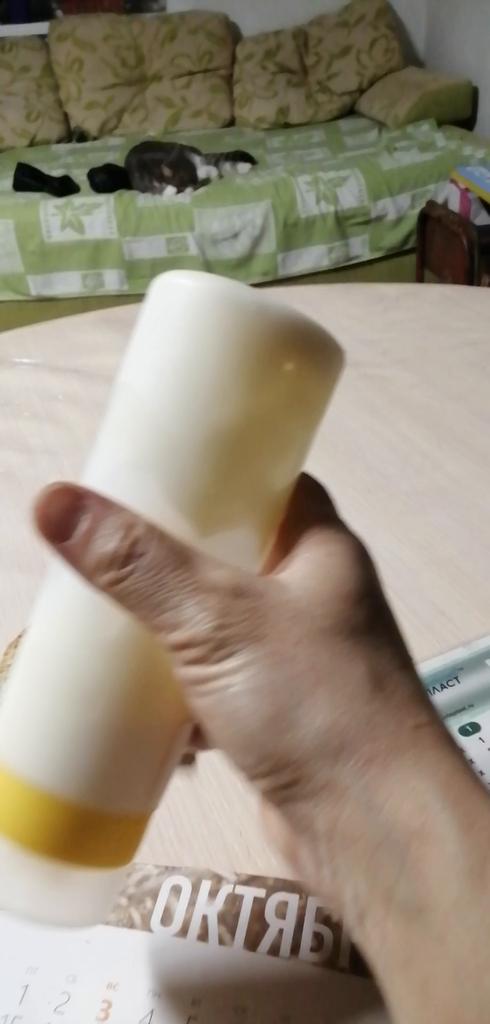 Guter weicher Behälter, schade, dass es keine Unterteilungen gibt, die die Füllmenge in Gramm anzeigen. Der Hals ist nicht schmal...
