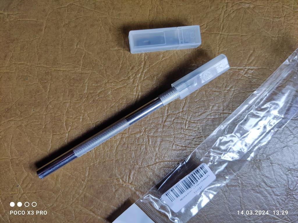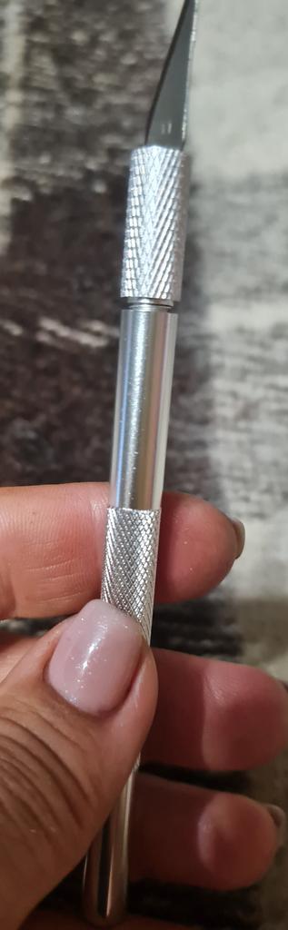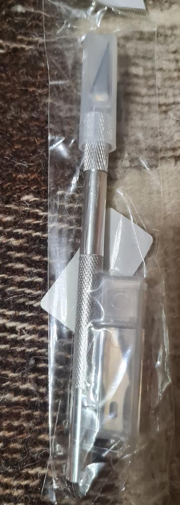 Das Skalpellmesser ist ausgezeichnet, mit Ersatzklingen. Für die Klinge gibt es eine Schutzhülle. Ersatzteile befinden sich ebenfalls in einer separaten Box.