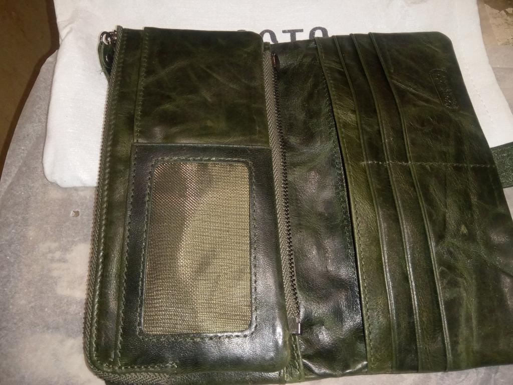 Das Paket kam schnell an. Geldbörse aus echtem Leder, geräumig. Viele Taschen für Karten. Das Fach für Kleinteile ist mit einem Reißverschluss gesichert – Sie können es öffnen, wenn Sie es nicht benötigen. Ich empfehle es zum Kauf.