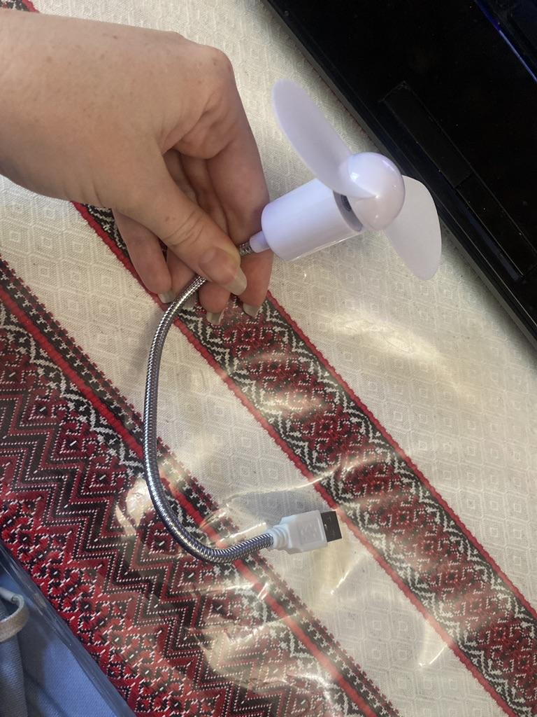 Der Lüfter ist cool, ich habe ihn an eine Powerbank angeschlossen. Super!