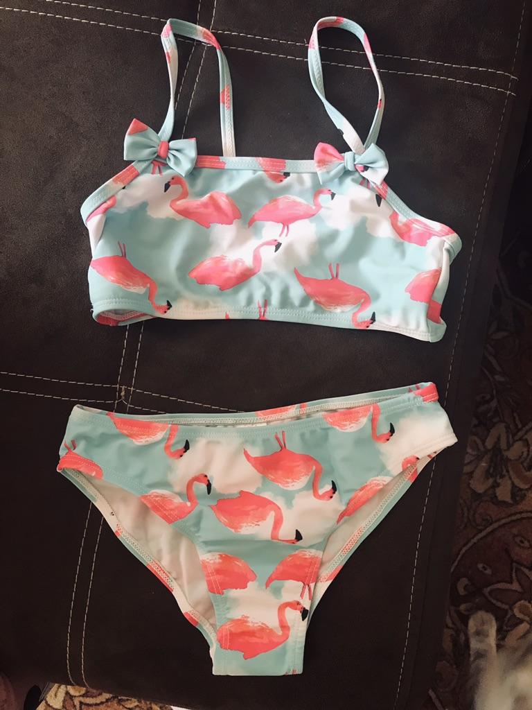 Mädchen-Bikini, niedlicher Flamingo-Druck, zweiteilig, Strandkleidung, geteilte Badebekleidung für Kinder, Badeanzug, Baby-Badeanzug