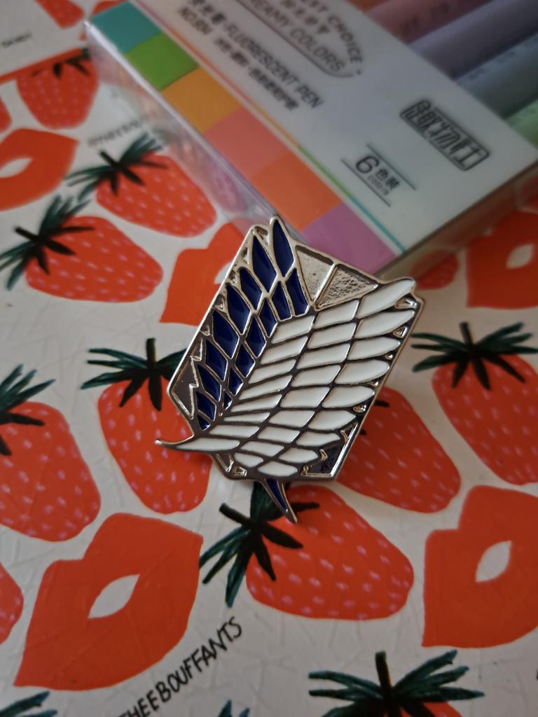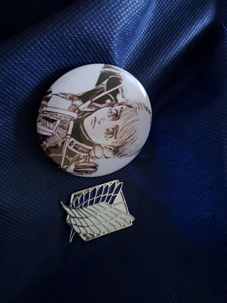 Wunderschöner Pin aus dem Attack on Titan Manga 🔰 Detailgetreue Wiedergabe von Details und Farben 💎 So stylisch und modisch 💯 Schneller Versand und perfekte Verpackung ⚡️🎁 Ich benutze es mit meiner Jeansjacke und meinem Beutel🥰