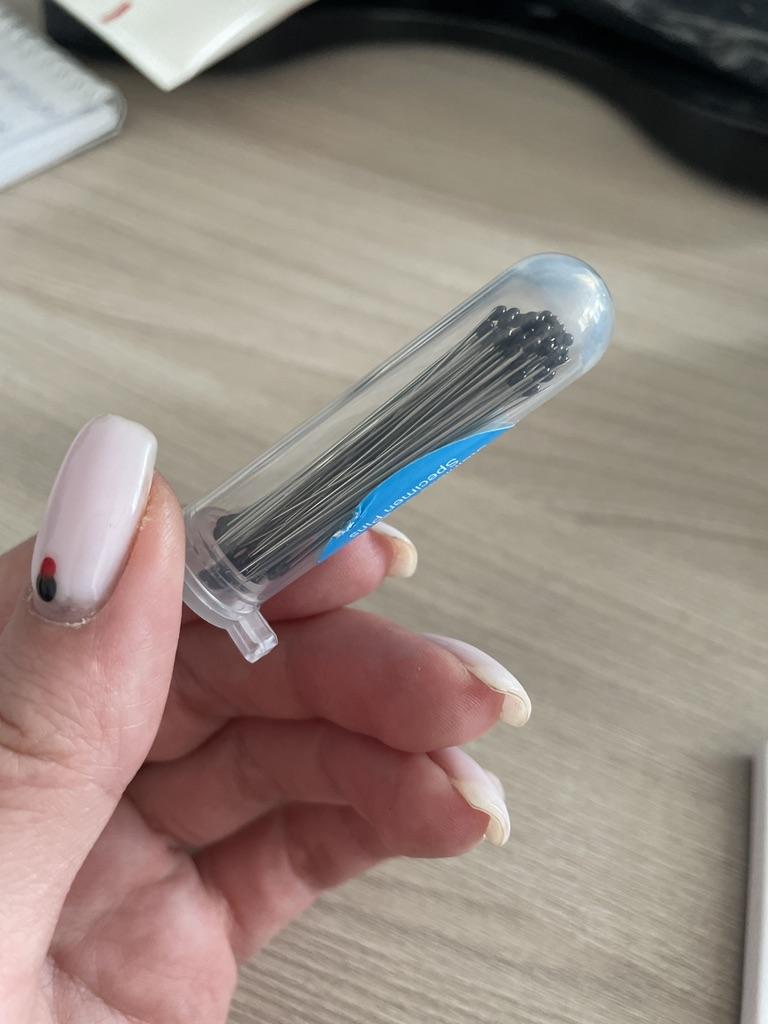 Die Nadeln sind dünn und scharf. In einer Tüte verpackt, ich habe die Menge nicht gelesen