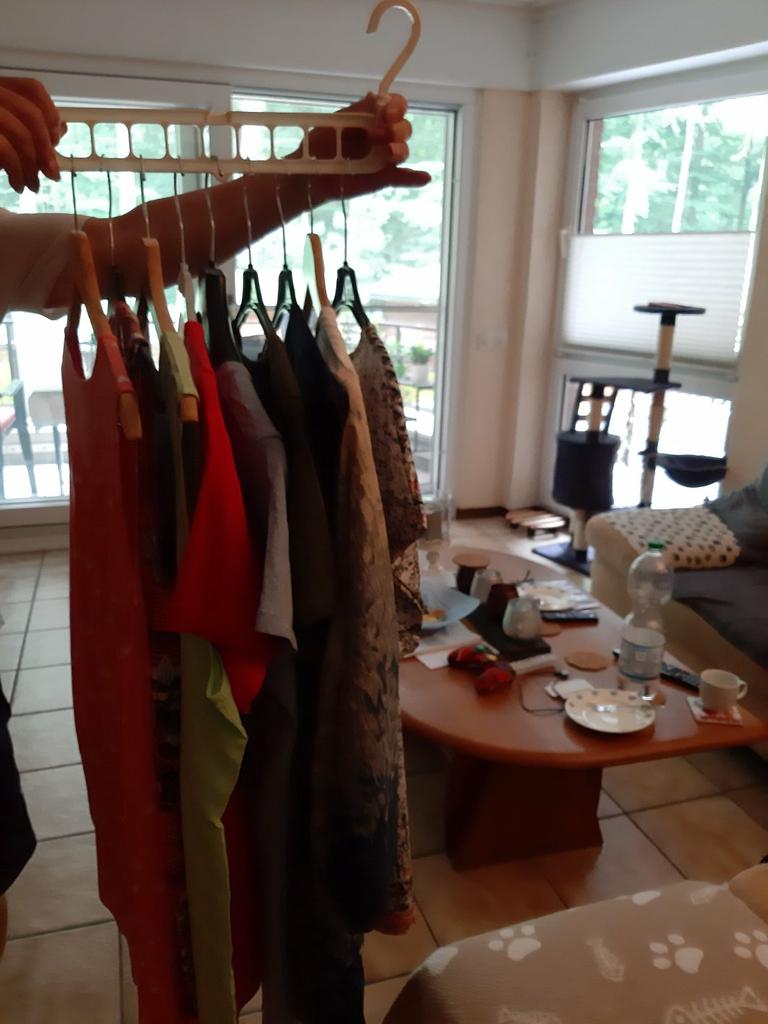 🇷🇺 Доставка: заказала за 4€, 06.03. - получила 22.03., то есть доставили товар до Германии за 2½ недели👍 В посылке находилось 3 товара, упакованы сначала каждый по отдельности в пластиковый пакет, потом в один общий от Joom, всё дошло неповрежденным👍 Цвет: выбрала серый, соответствует фотографии продавца👌 Размер: длина 33см, высота 17см, вес 66г👌 Качество: на вид и ощупь - крепкий, стабильный пластик. На данный момент на плечиках висят ~8кг, не прогнулись, не треснули👌 но места - всё-таки не так много сэкономила, как представляла. Потому что даже и в вертикальной позиции плечиков - вещи ложатся друг на дружку ведь лесенкой (особенно если это "громоздкие" вещи типа пиджаков, курток). Но я всё же довольна😊 Спасибо продавцу и Joom🙏👍 🇩🇪 Lieferung: für 4€ am 06.03. bestellt - am 22.03. zugestellt bekommen! Der Versandweg nach Deutschland dauerte somit 2½ Wo. Das Paket enthielt 3 bestellte Artikel, wobei jeder darin - erstmal einzeln in eine Plastiktüte verpackt war, danach noch in eine gemeinsame von Joom, somit kam bei mir alles unversehrt an👍️ Farbe: grau, entspricht der Darstellung/den Bildern des Verkäufers👌 Grösse: Länge 33cm, Höhe 17cm, Gewicht 66g👌 Qualität: es ist sehr leicht, aber sieht und fühlt sich stabil an, aus Kunststoff. Momentan hängen da ca. ~8kg Gewicht dran, wurde nicht verbogen und ist nicht durchbrochen. Aber letztendlich doch nicht so viel Platz dadurch gespart, wie erhofft. Denn wenn man das Teil auch vertikal nutzt - legen sich die Kleider stufenweise aufeinander. Verwendet man dazu noch etwas dickeren Sachen a la Jacken/Jacketts - geht das drangehängte "Haufen" schnell in die Breite😊 Ich bin jedoch zufrieden und empfehle es weiter👌 Danke an den Verkäufer und Joom!🙏