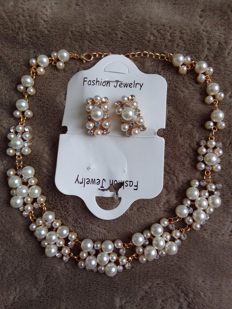 Twinkle Trinket 2-teiliges Damen-Set mit Kunstperlen, Kristallsteinen, eingelegten Halsketten, Ohrringen und Ornamenten