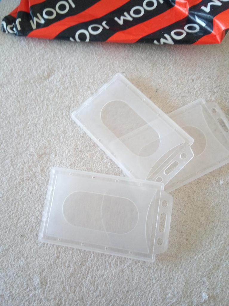 Gute Taschen. Aus dickem Polyethylen, nicht zerbrechlich und stark genug. Praktisch für zwei Karten: Sie können zwei Karten in eine Tasche stecken oder zwei Taschen "Rücken" aneinander hängen.