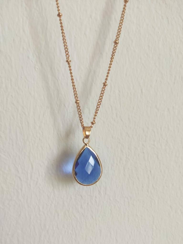 Halskette mit Geburtsstein aus mehrfarbigem Glas in Goldfarbe, Tropfenschliff, Anhänger, Charm, Steinkette, Schmuck, Geschenke