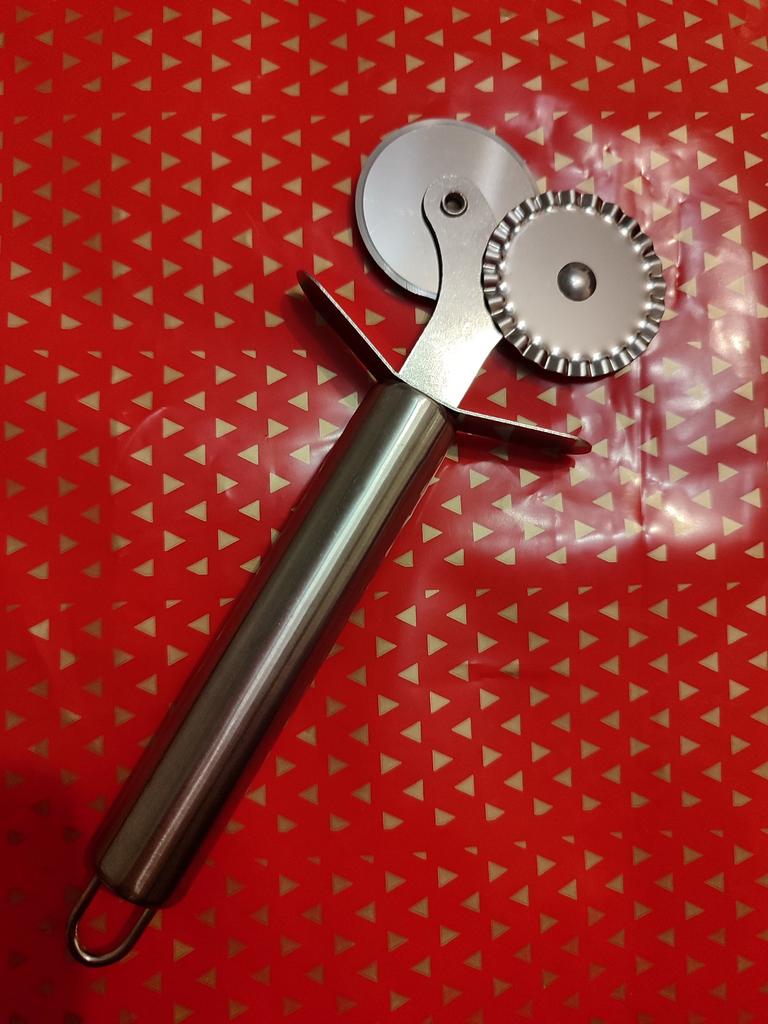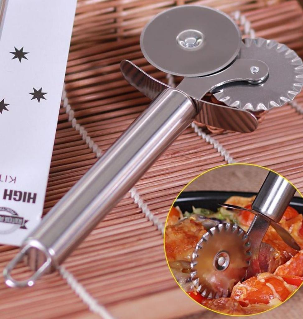 1 Stück Doppelrollen-Pizza-Edelstahlmesser, Nudelschneider, Nudelnudeln, runde Spitzenpizza