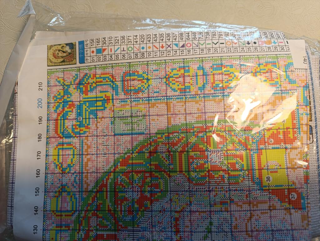 Ich habe ein ganz anderes Set bestellt. Ich füge Fotos der Bestellung bei (Blumen in einer Vase, Foto 1 und 2) und ein Foto von dem, was ich erhalten habe (Ikone der Gottesmutter, Foto 3 und 4)