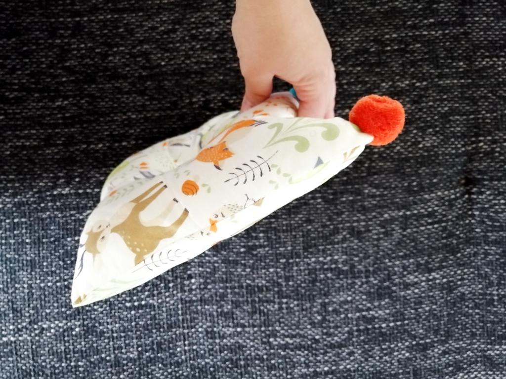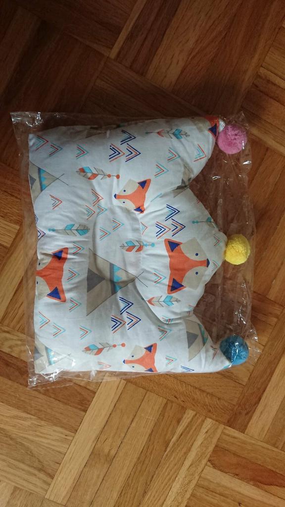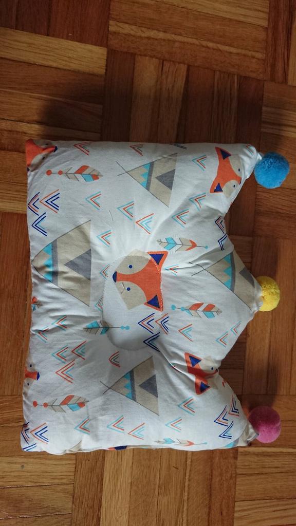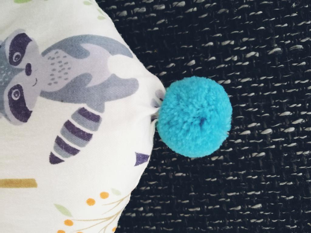 Sehr süßes kleines Kissen. Die farbigen Bommel sind leider anders wie abgebildet. Hatte extra darauf geachtet, möglichst für Jungs zu wählen. Jetzt sind jeweils pinke und rosa Bommel dran...