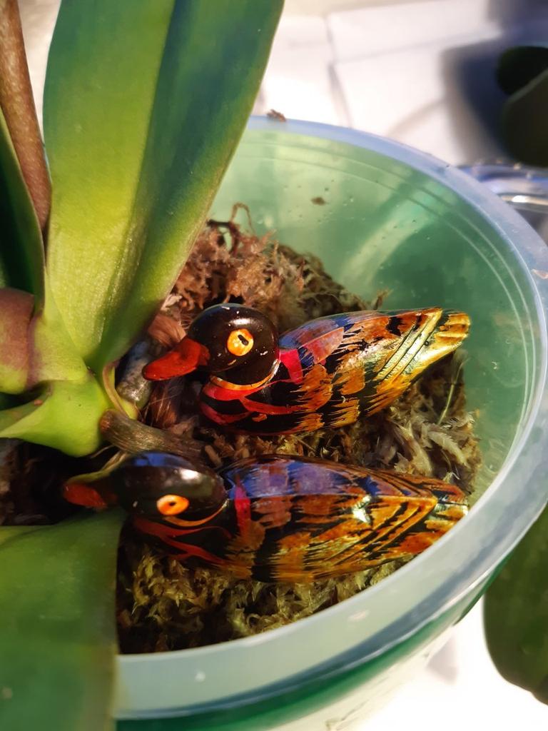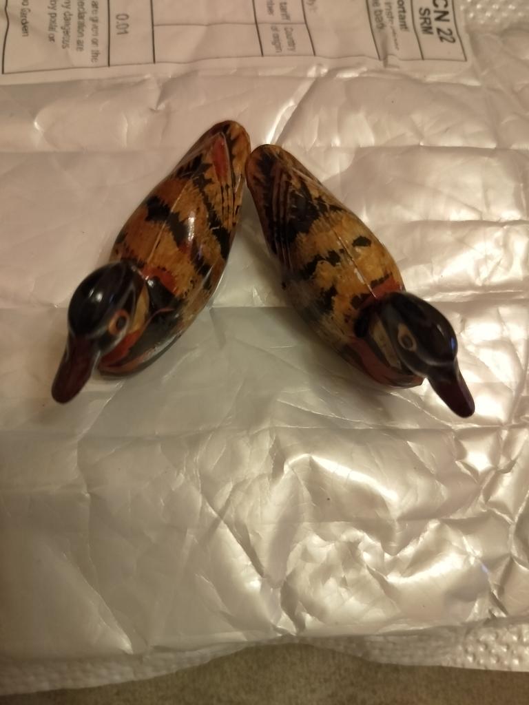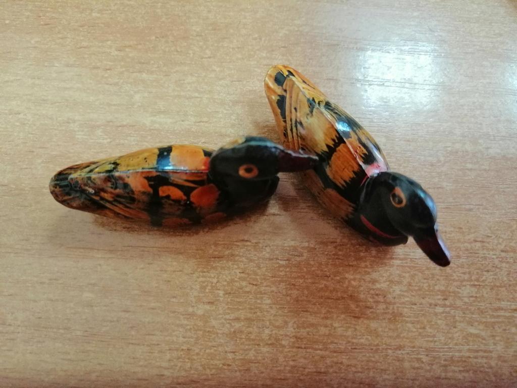 Mandarinenenten sehen aus der Ferne wie hölzerne Enten aus. Ich habe sie für eine Holzuhr gekauft. Siehe Foto. Gefällt mir sehr gut! 5