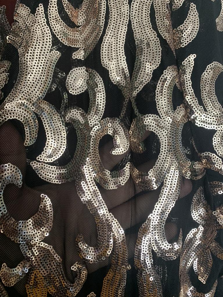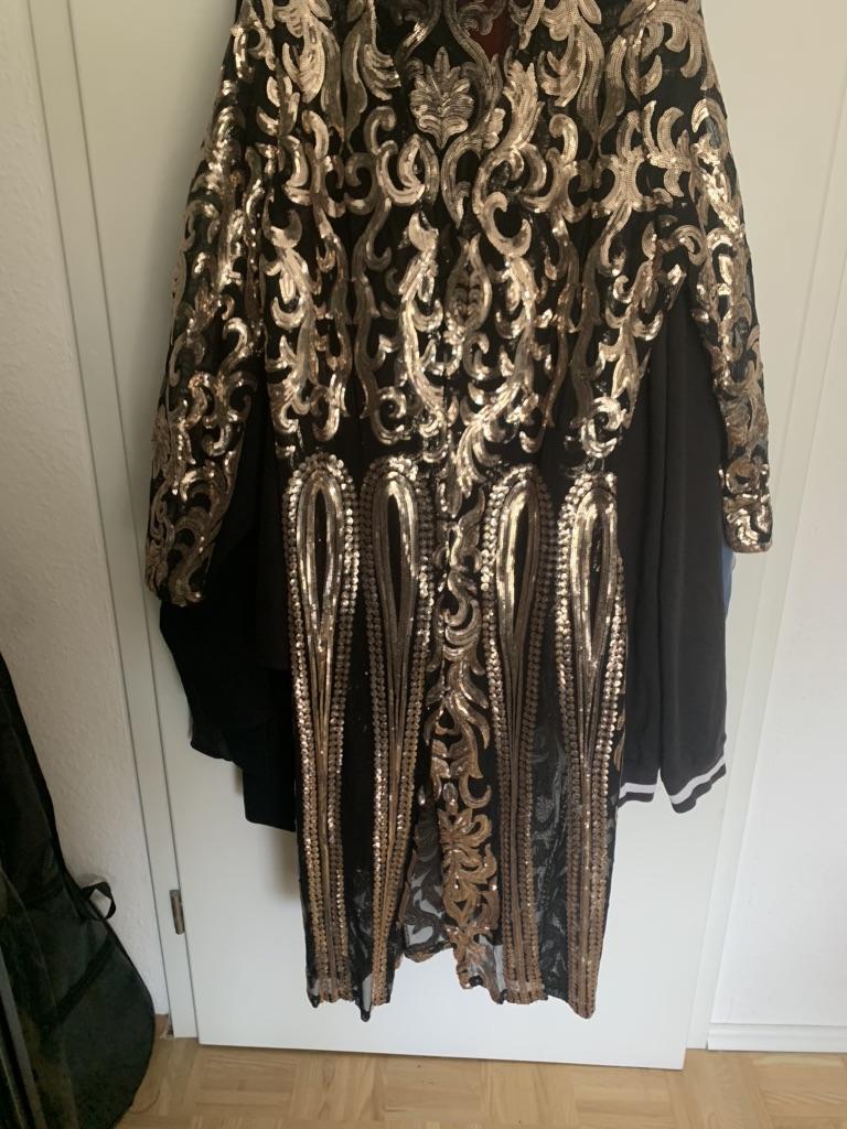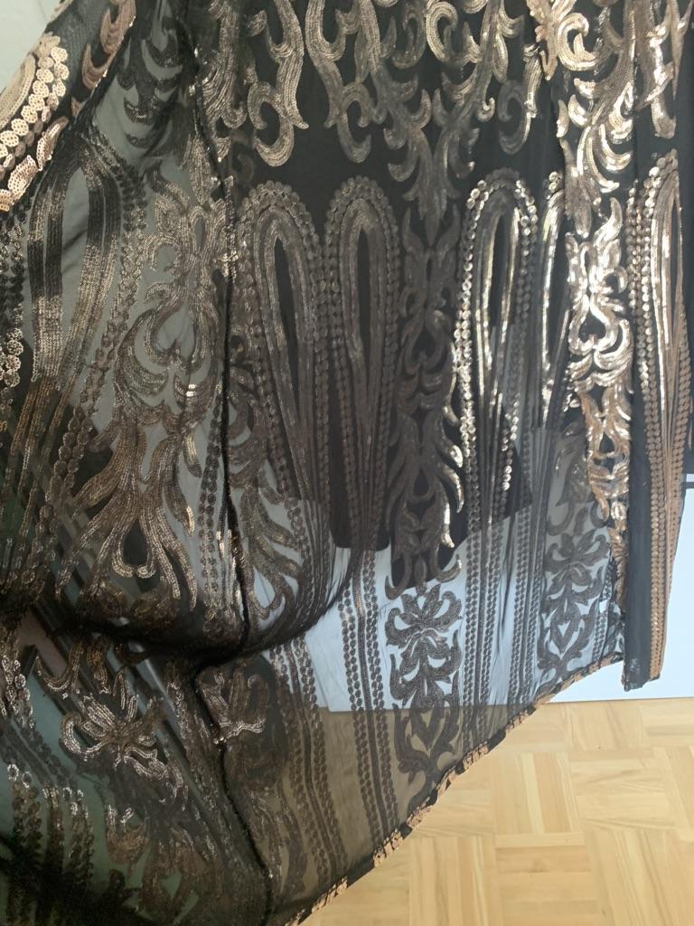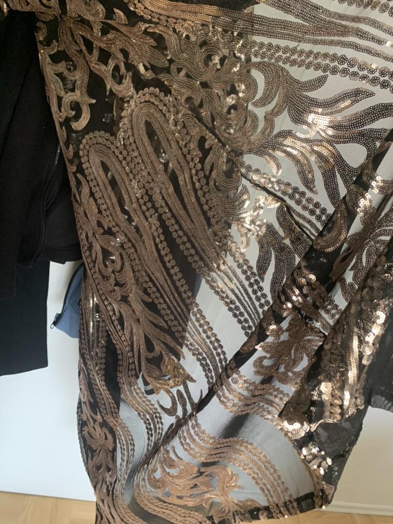 Lily Lady Sexy Pailletten-Perspektive Langarm-Maximantel-Kleid-Cardigan