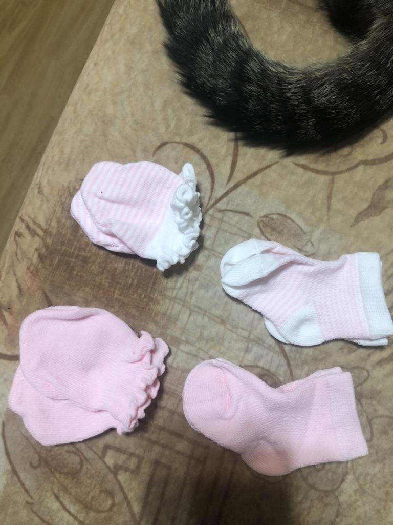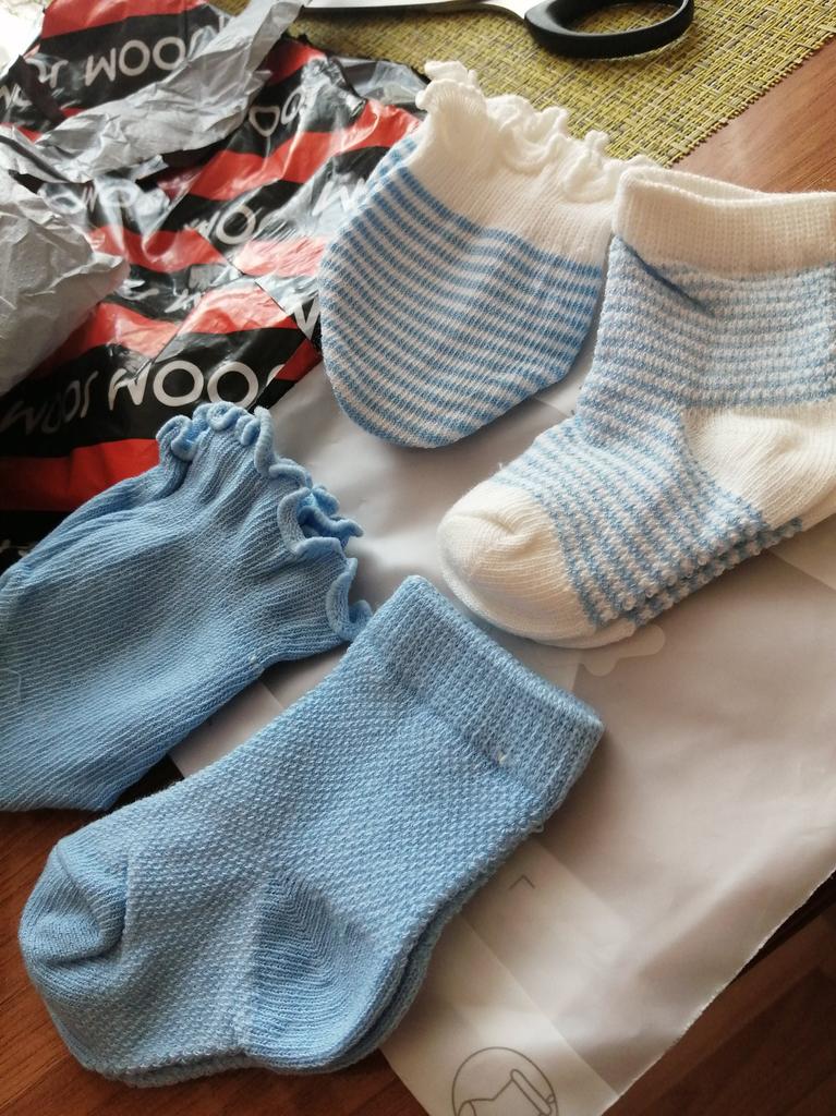 Tragen Sie bei einem Baby mit einer Körpergröße von 51 cm und einem Gewicht von 3 kg zu große Socken direkt an den Beinen, aber um den „Mann“ oben zu fixieren – egal. Socken und Stiefeletten sind recht dünn, zum Wärmen der Gliedmaßen im Winter sind sie nicht geeignet. Wir werden wachsen. Danke Joom!