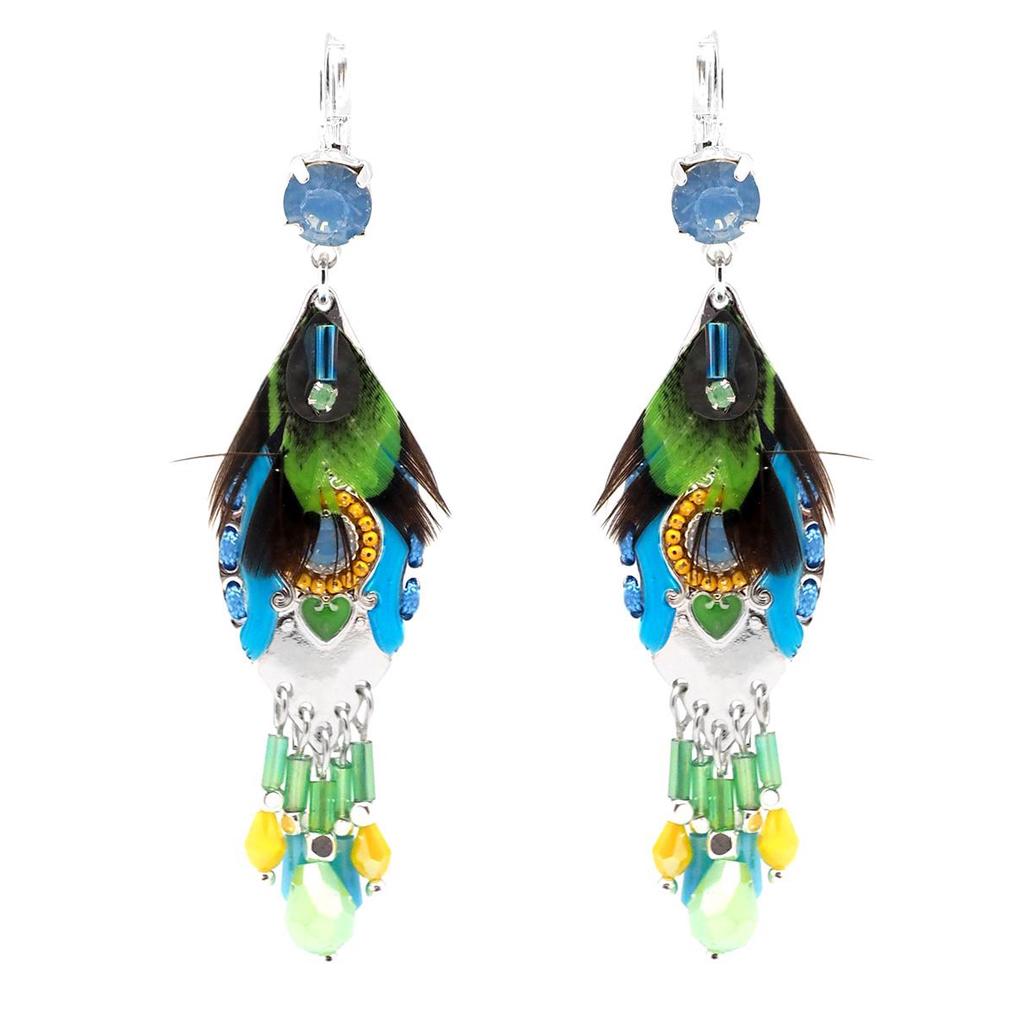 Les Trésors De Lily [Q1048] - Designer-Ohrhänger 'Acapulco' blaugrün silberfarben - 65x18 mm