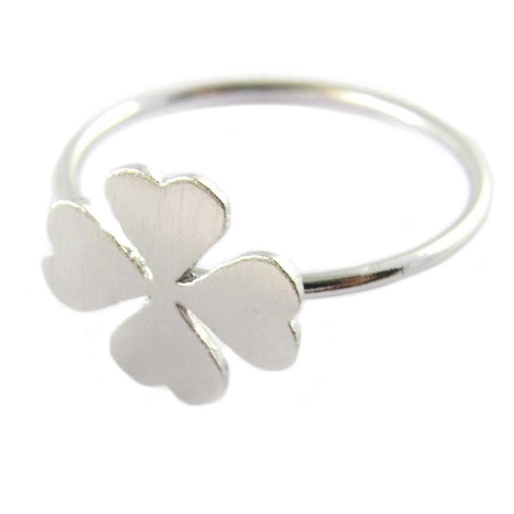 Handgefertigter silberner „Klee“-Ring – 10 x 10 mm