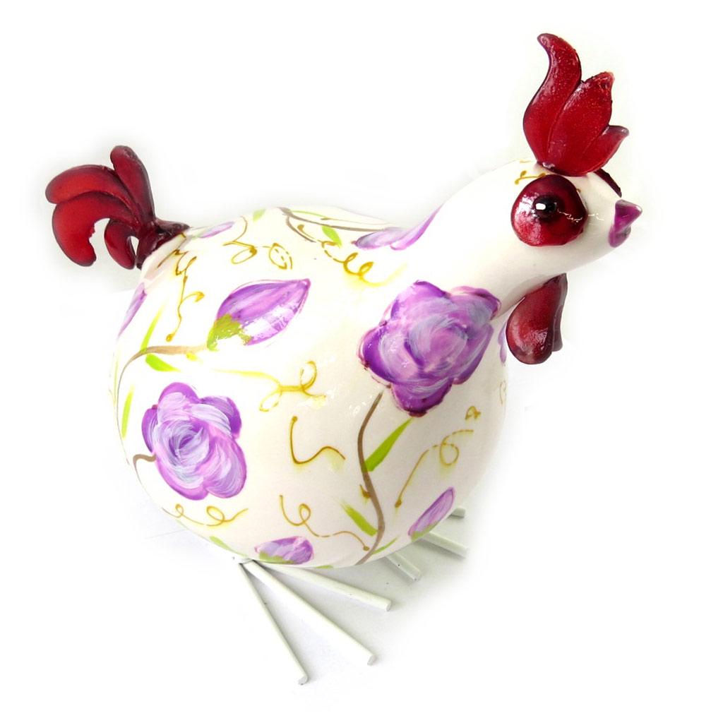 Les Trésors De Lily [M7782] - Figurine céramique 'Coq Cororico' blanc violet (20 cm)