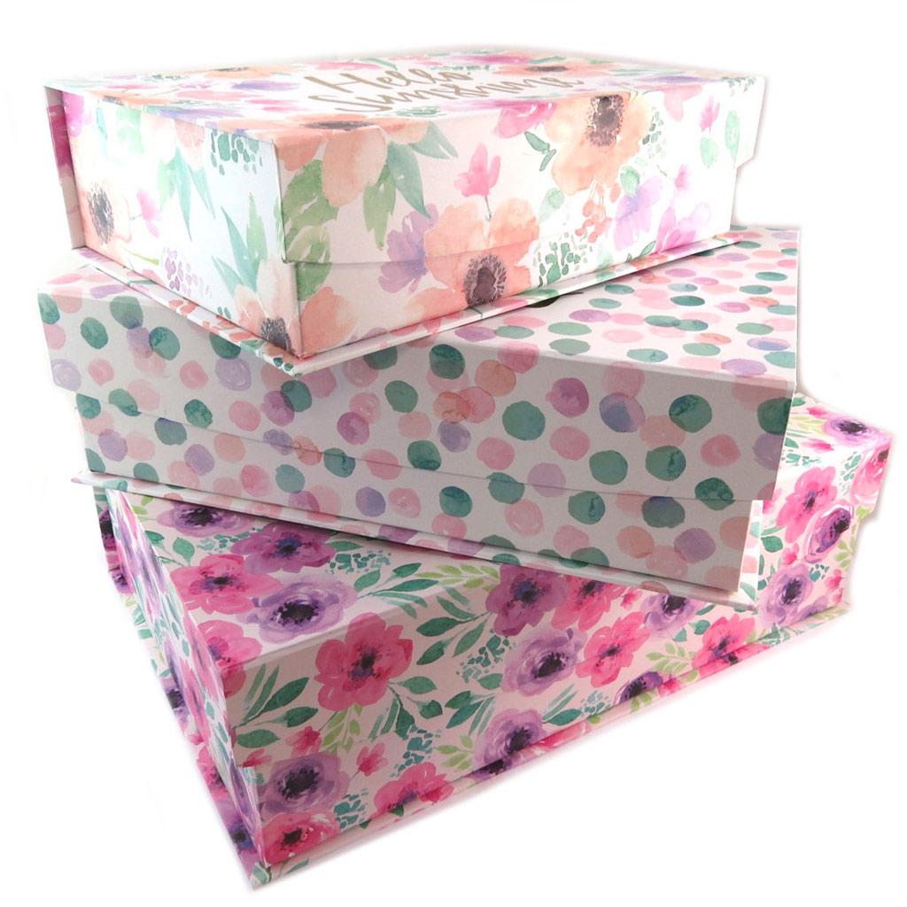 Les Trésors De Lily [P5723] - Set de 3 boîtes à Souvenirs gigognes 'Bonheur Floral' rose mauve - 42. 5x29. 5x13 cm