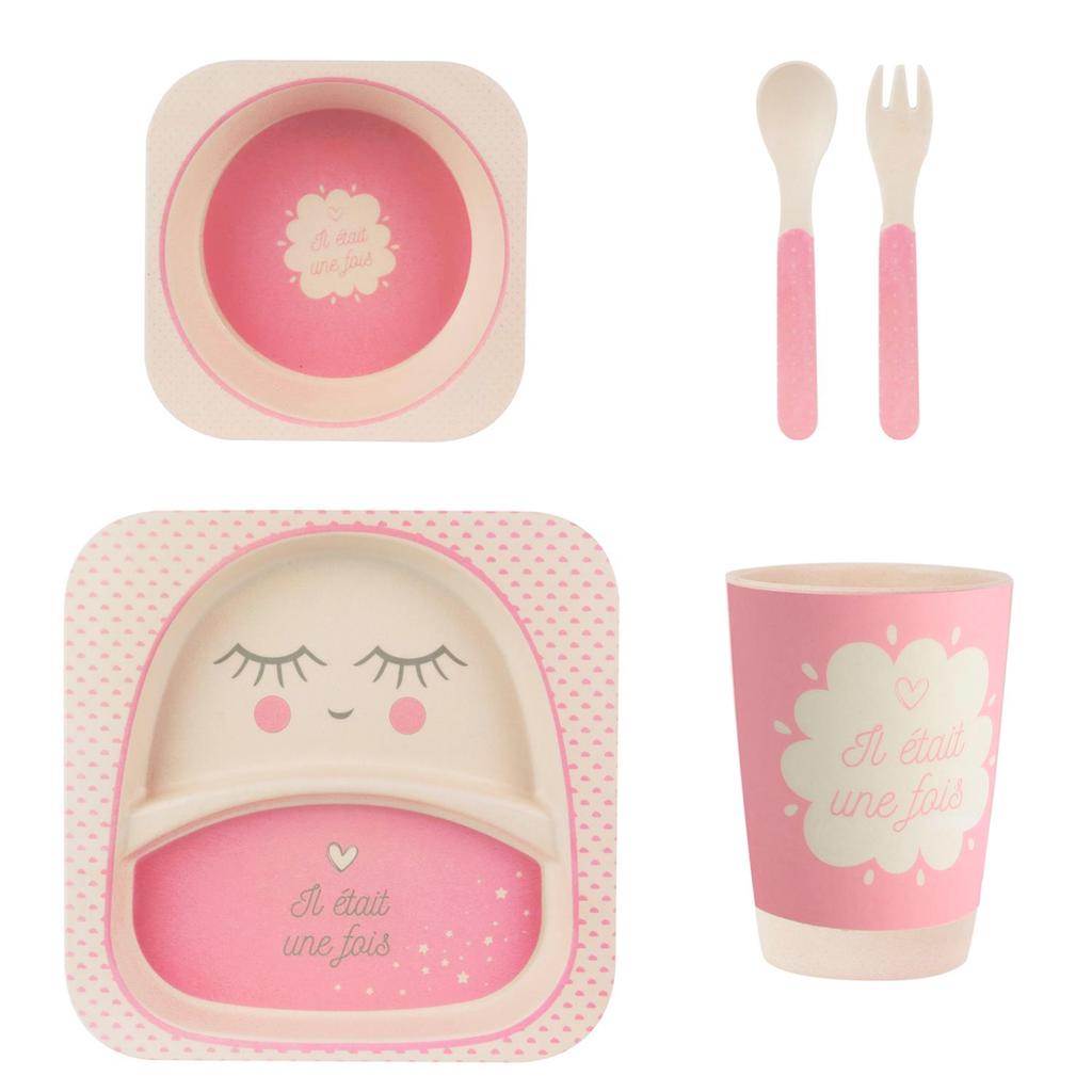 Les Trésors De Lily [Q7766] - Set repas enfant bambou 'Il Etait Une Fois' rose - (5 pièces)