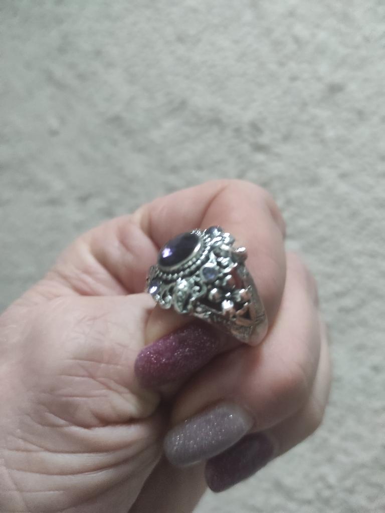 Erstaunlicher Ring. Im Inneren befindet sich ein Amethyststein. Metall in Silberoptik. Wunderschön! 🔥🔥🔥