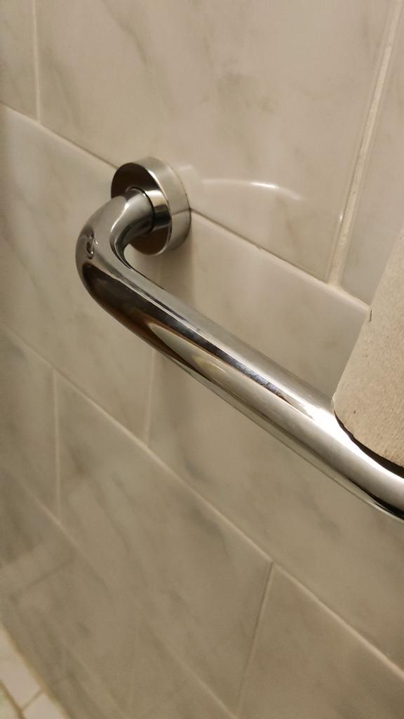 Sieht ziemlich stark aus. Es sind alle Befestigungselemente vorhanden. Aber ich werde den Dübel durch meinen eigenen ersetzen. Ich habe es für meinen Großvater mit in die Badewanne genommen, damit er es sich schnappen kann, wenn er aufsteht und rausgeht