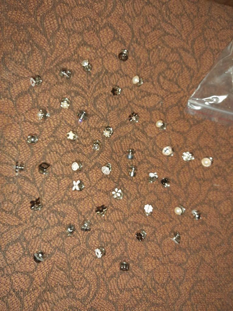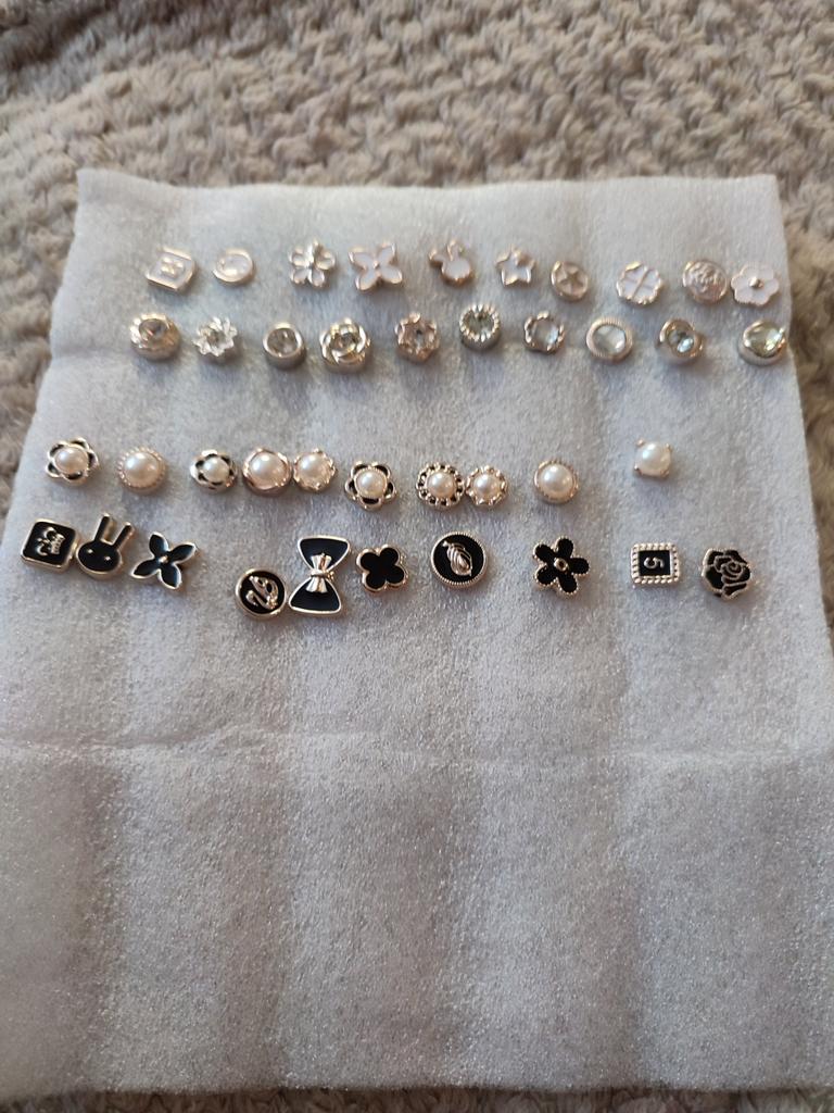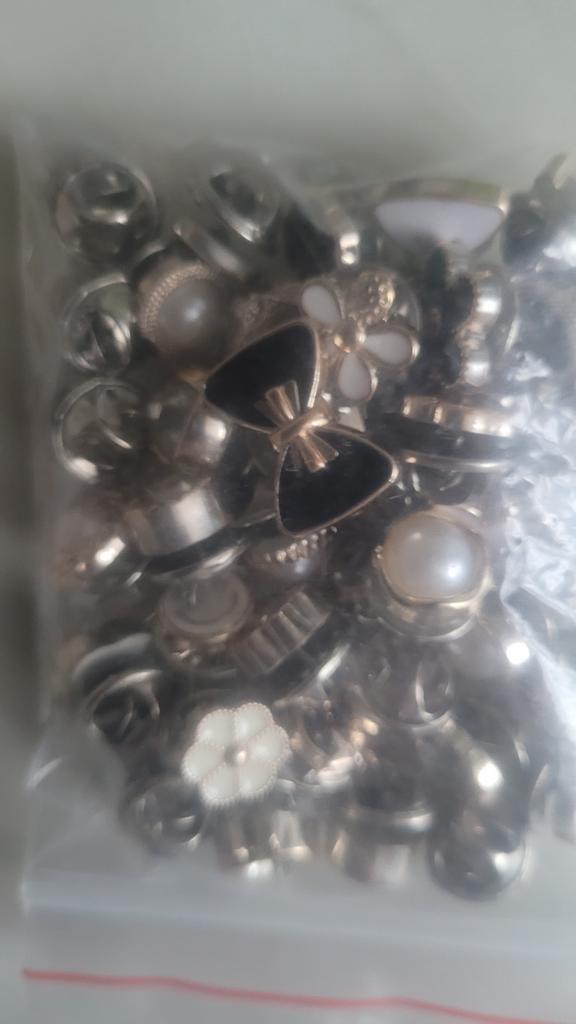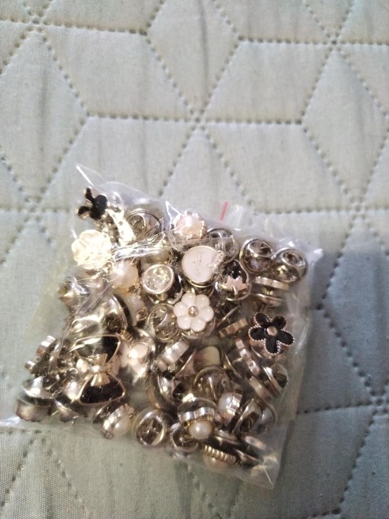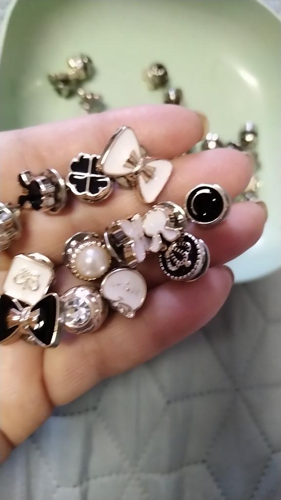 Sehr interessante Nieten-Haarnadeln, ich weiß nicht, wie ich sie nennen soll, aber sie sind cool, klein, sie ziehen sich gut an und halten fest, es gibt viele davon in der Packung und verschiedene Muster, Sie können für jede Kleidung wählen, Ich empfehle zu kaufen.
