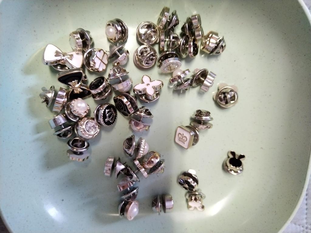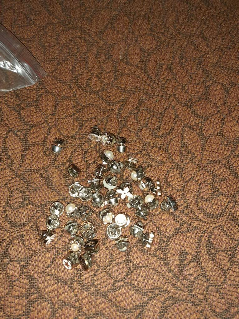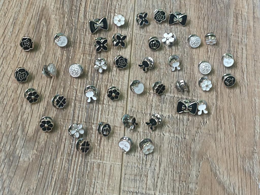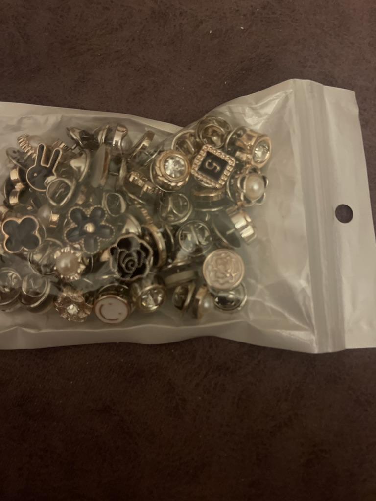 Sehr interessante Nieten-Haarnadeln, ich weiß nicht, wie ich sie nennen soll, aber sie sind cool, klein, sie ziehen sich gut an und halten fest, es gibt viele davon in der Packung und verschiedene Muster, Sie können für jede Kleidung wählen, Ich empfehle zu kaufen.