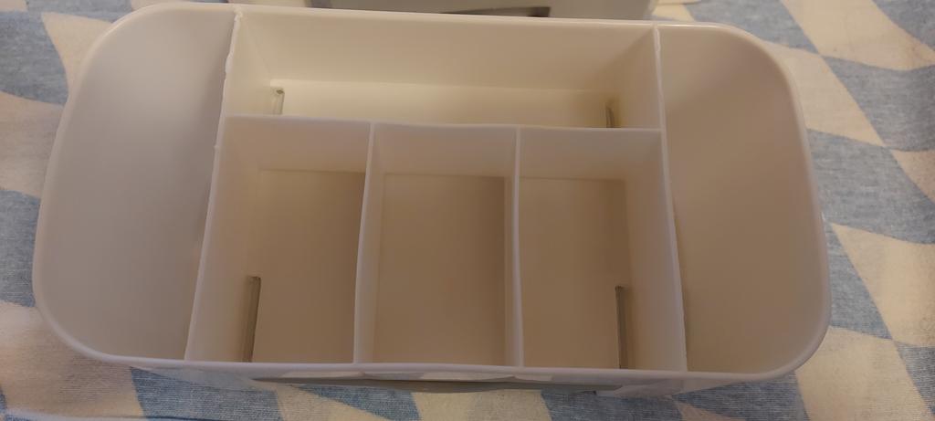 Funktioniert und passt auch einiges rein. Benutze es für Nähuntensilien, die ich während dem nähen immer brauche, so habe ich alles sortiert direkt da, was einiges erleichtert. Einen Minuspunkt gibt es, den die Führung der Schublade war nicht richtig ausgestanzt und das musste ich noch machen, damit es richtig saß.
