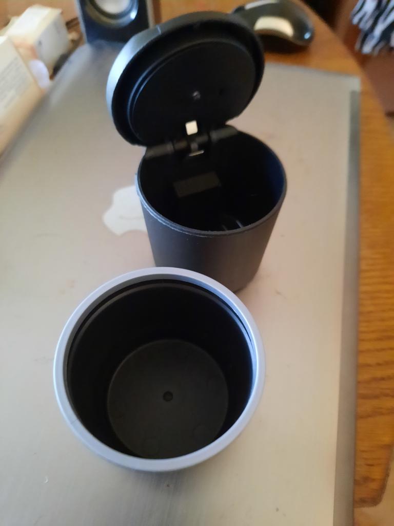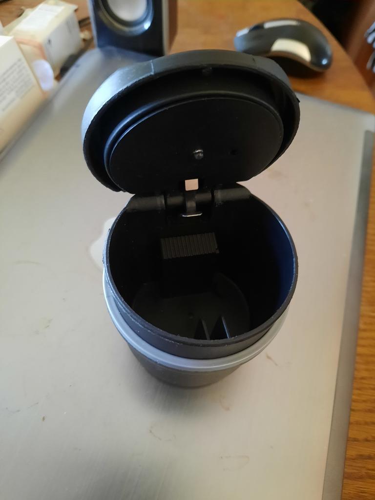 Ausgezeichneter Aschenbecher. Im Gegensatz zum Vorgängermodell staut sich die Asche nirgends und fällt beim Entleeren nicht von allen Seiten herunter. Praktisch für Getränkehalter unterschiedlicher Größe.