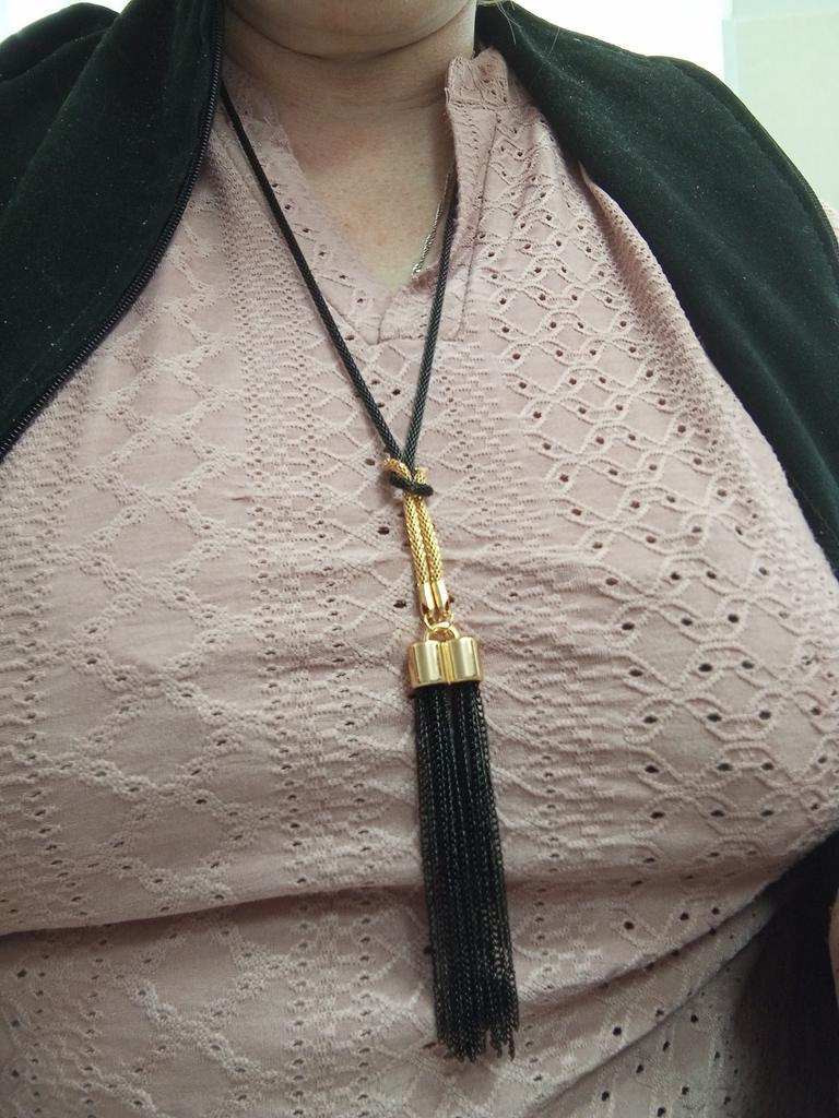 Eine sehr coole Halskette, sie sieht einfach toll aus, sie ist nicht kurz, sie ist kürzer, genau das, was ich wollte. Danke Jum!!!