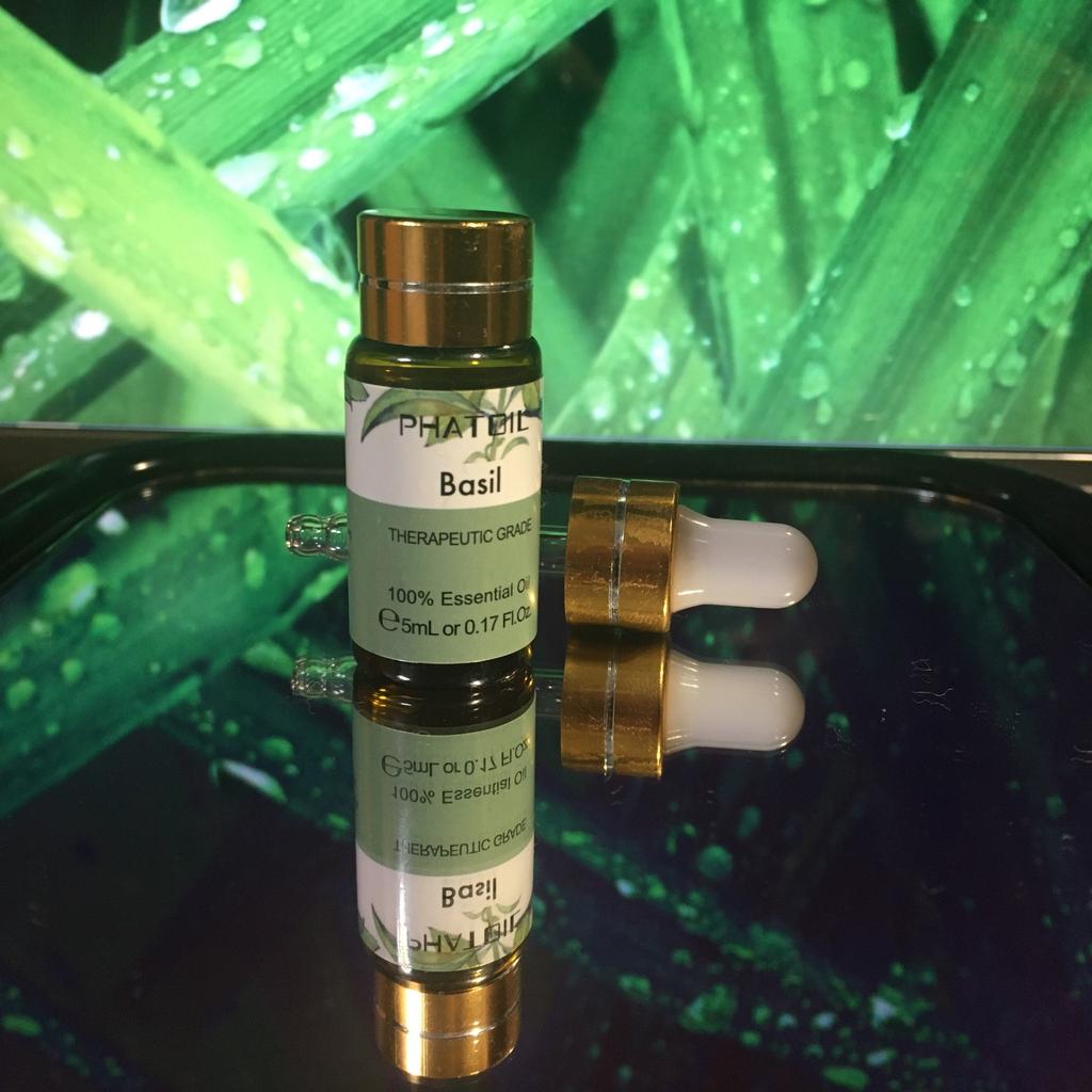 PHATOIL 5 ml ätherisches Basilikumöl, Aromatherapie für Spa-Ölbrenner, Luftbefeuchter, erfrischendes Anti-Aging-Gesicht, reines ätherisches Öl